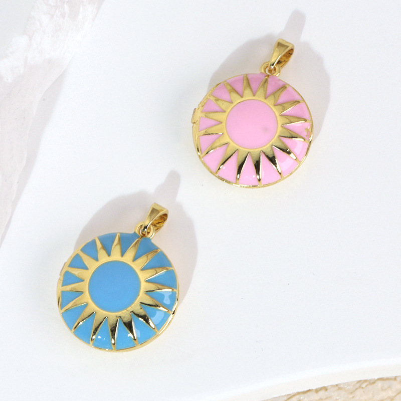 跨境欧美个性圆牌可开合相册滴油吊坠女可放照片DIY小挂件配件