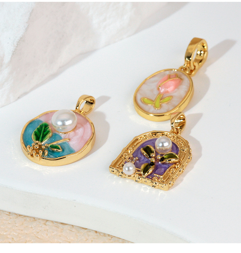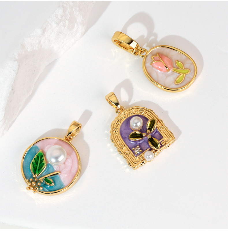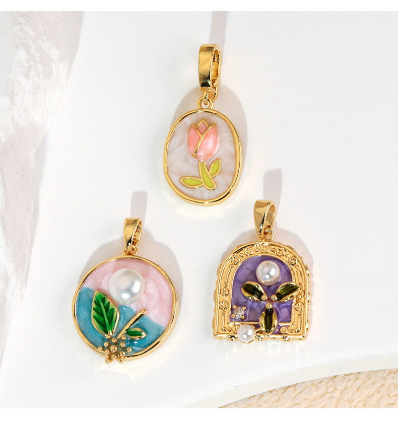 烧蓝珐琅彩铜镀金玫瑰百合郁金香荷花项链吊坠 DIY挂件配件单坠子 投诉