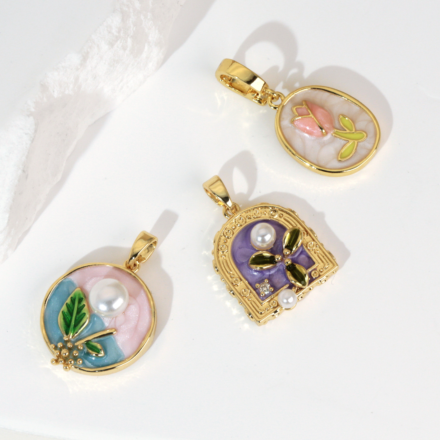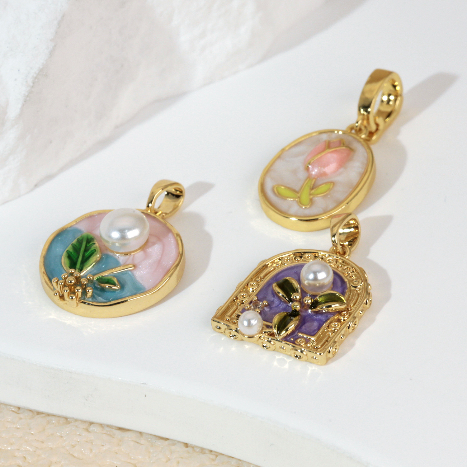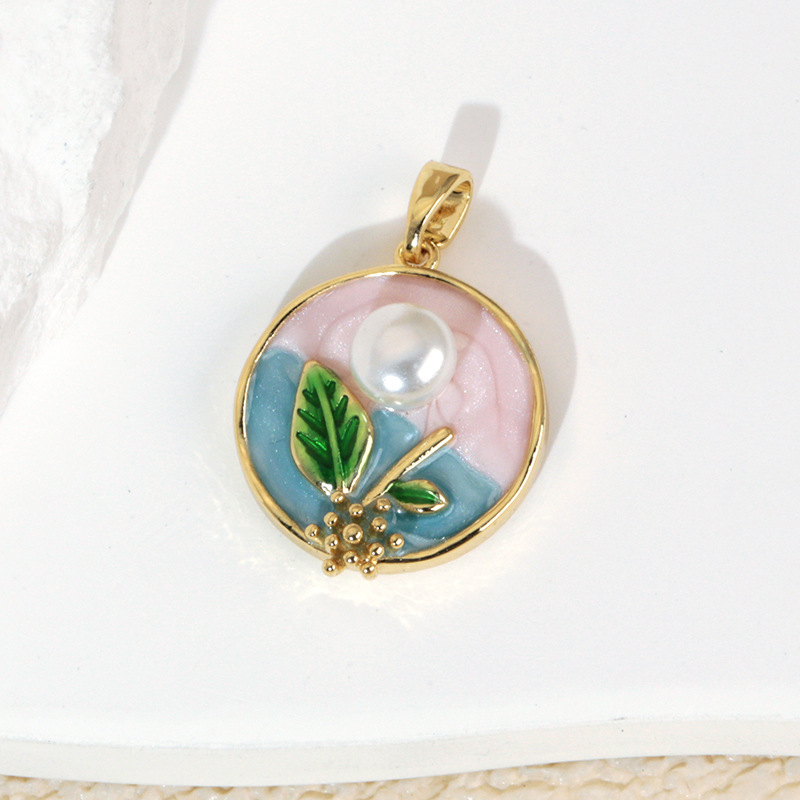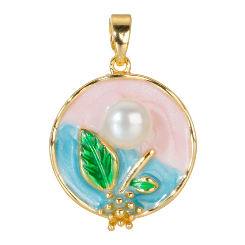 烧蓝珐琅彩铜镀金玫瑰百合郁金香荷花项链吊坠 DIY挂件配件单坠子