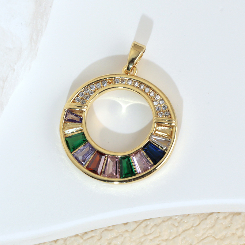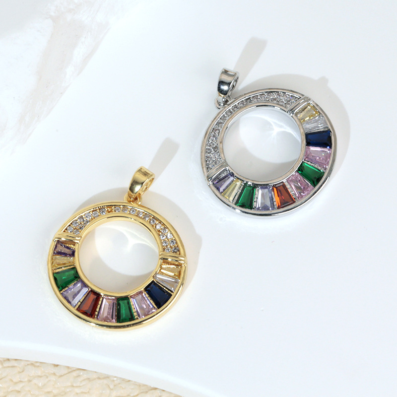 高级感彩色锆石圆环圆圈项链吊坠女锁骨链单坠子配件挂件耳环挂饰