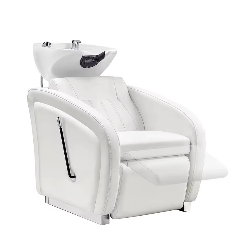 跨境出口简约半躺冲水床多色加厚舒适靠背手动抬腿挡板沙龙洗头床
