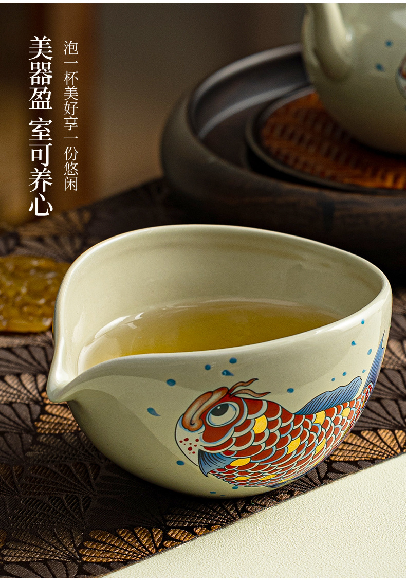 草木灰金玉满堂龙鱼分茶器公道杯单个倒茶公杯高档茶海茶具零配件