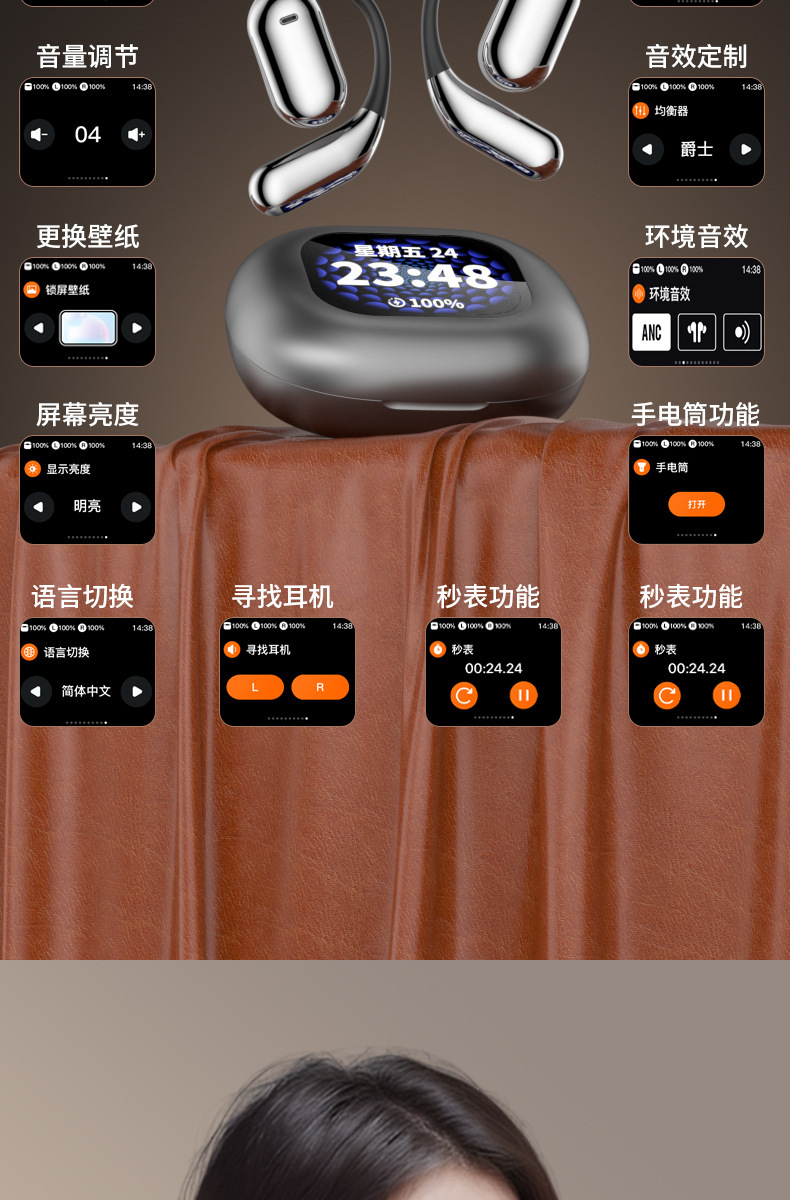 跨境新款Q16pro蓝牙耳机挂耳式智能显示屏开放式耳机降噪超长续航 投诉