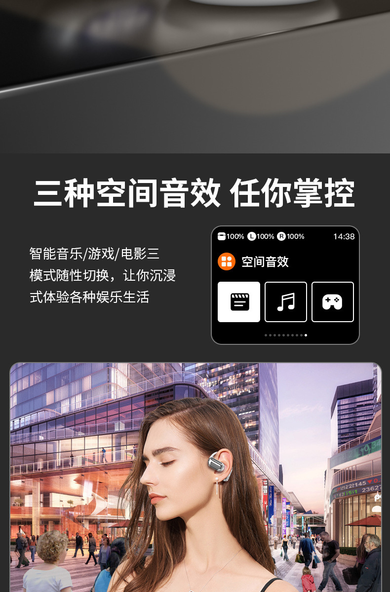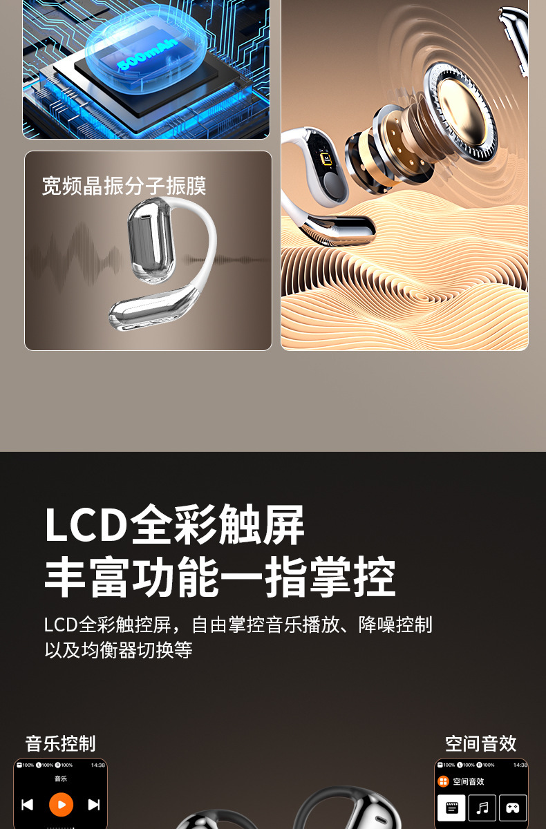 跨境新款Q16pro蓝牙耳机挂耳式智能显示屏开放式耳机降噪超长续航