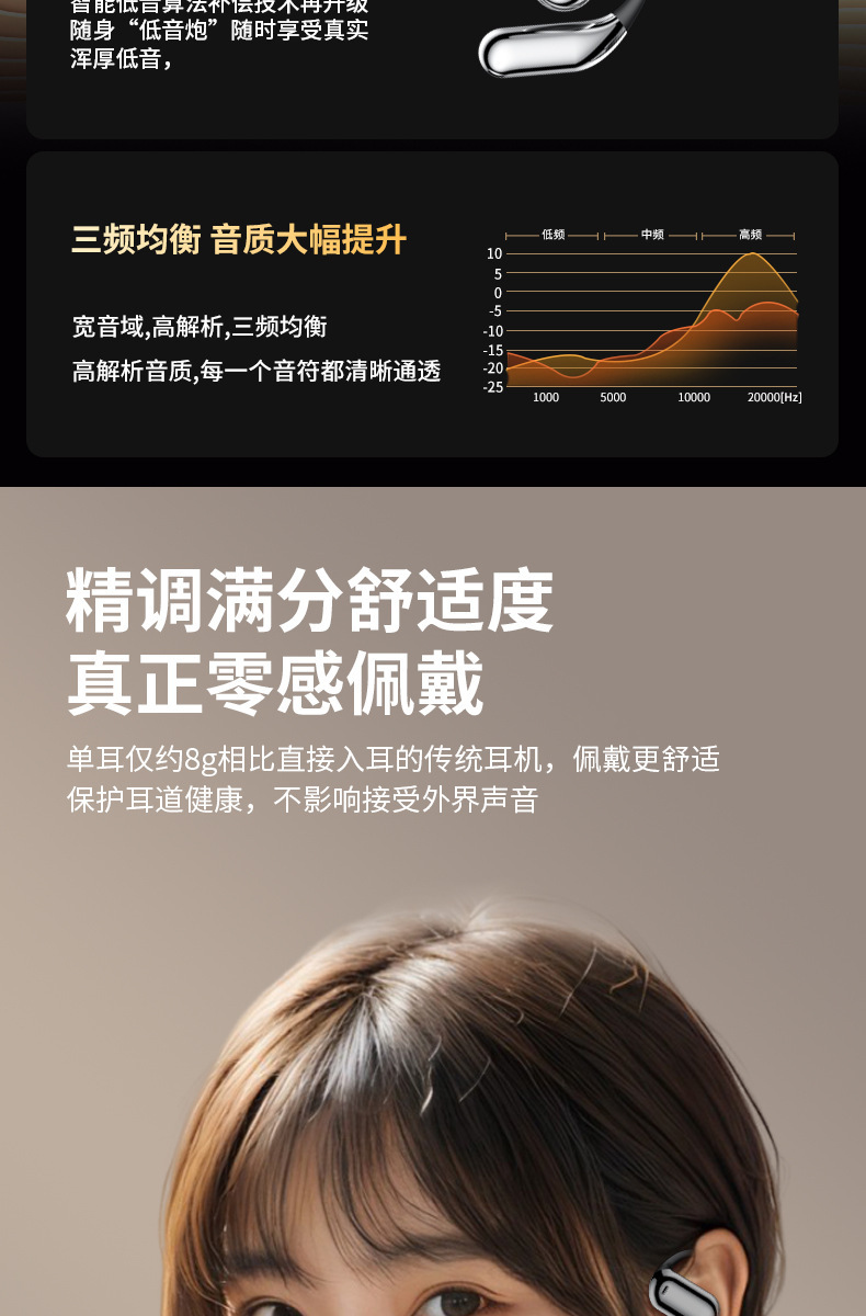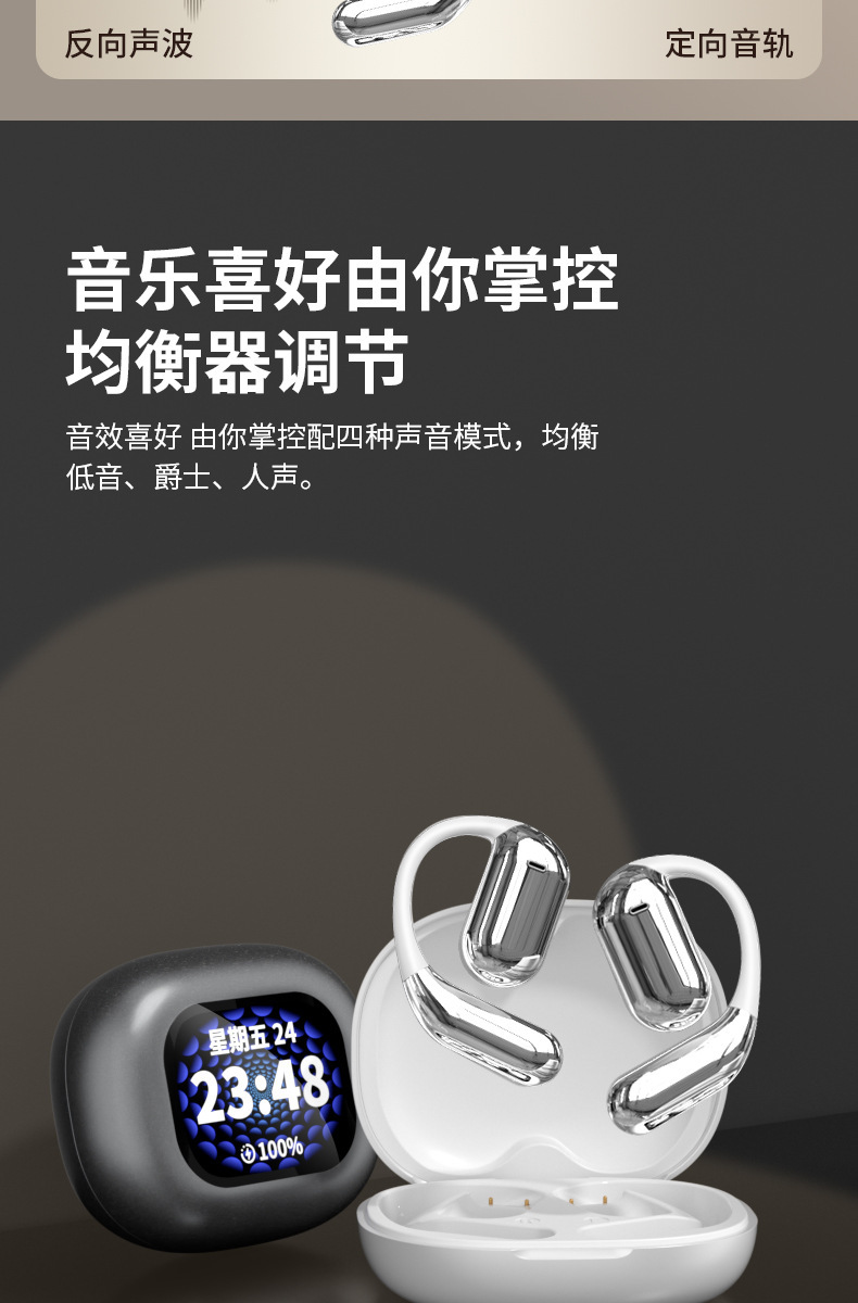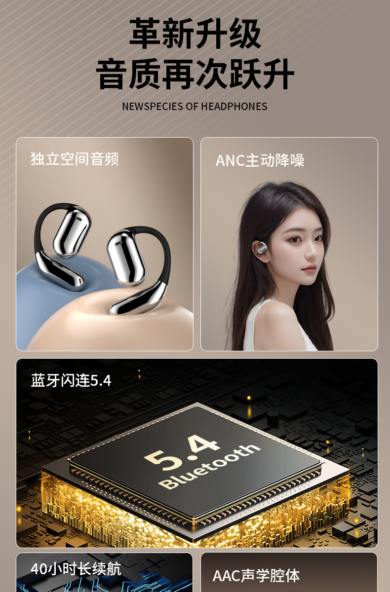品牌: 中性 传输范围: 10米 蓝牙协议: 5.4 使用方式: 挂耳式 是否单双耳: 双边立体声 主要销售地区: 欧洲,南美,东南亚,北美,东北亚,中东 有可授权的自有品牌: 是 是否跨境出口专供货源: 是 支持订制: 支持 是否专利货源: 否 模具类型: 私模 芯片类型: 杰理 续航时间: 8小时以上 上市年份/季节: 2025 风格: 创意设计 防水性能: 生活防水 材质: PC+ABS 重量: 0.242 kg/套