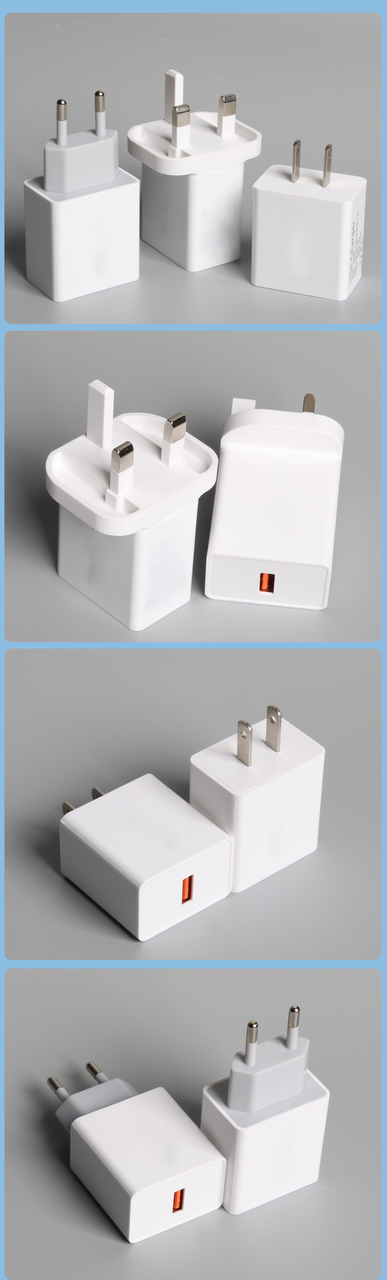 品牌: 创飞 产品认证: 中性 适用型号: 欧规,美规 颜色: 白色 充电协议: QC3.0 插头标准: 欧标 是否数显: 否 输出功电流总功率: 3000MA 输出电流: 5V 3a 最大输出功率: 5V3A 是否支持快充: 是 接口类型: USB 输出功率: 5V 颜色分类: 白色,黑色 是否原装: 是 重量: 0.239 kg/只