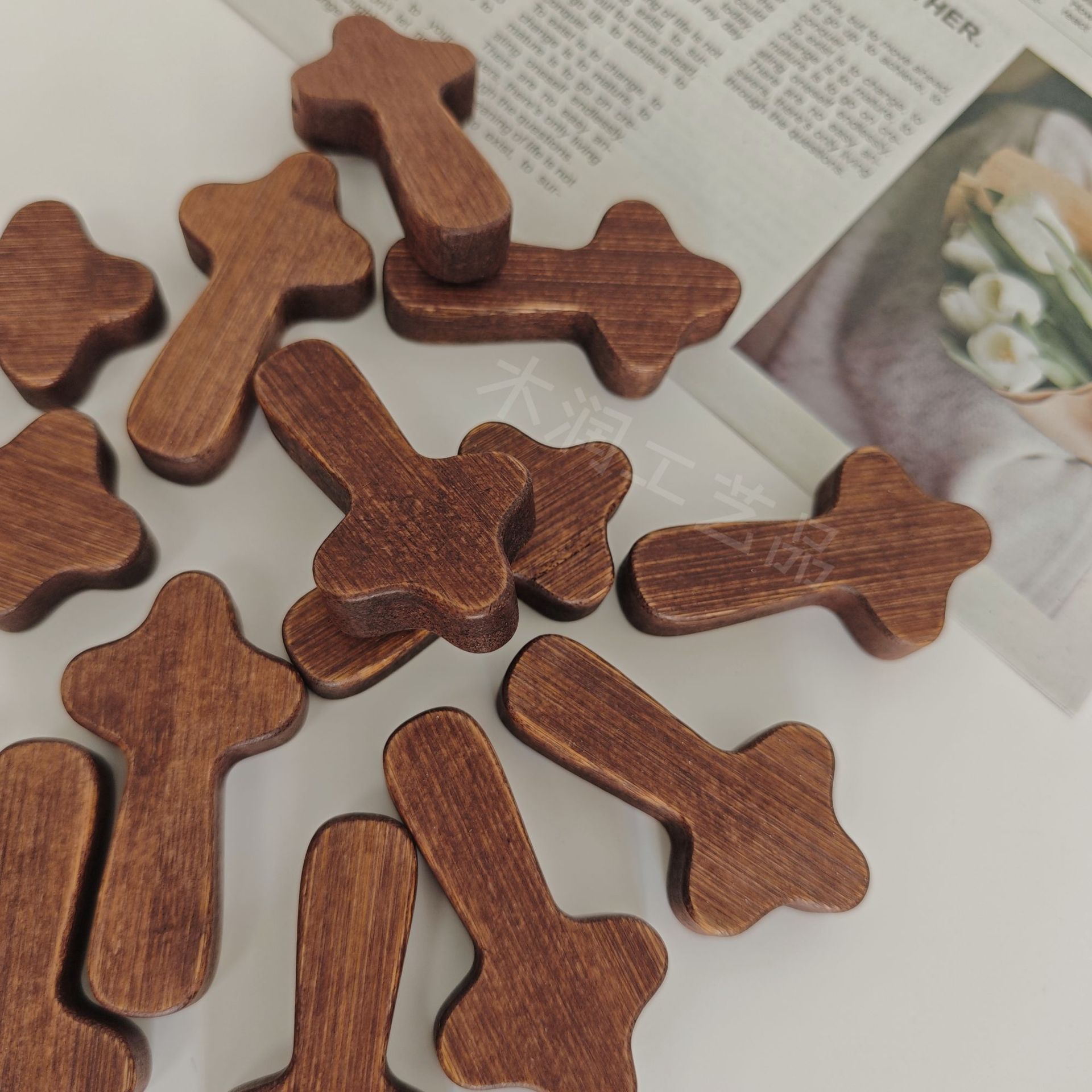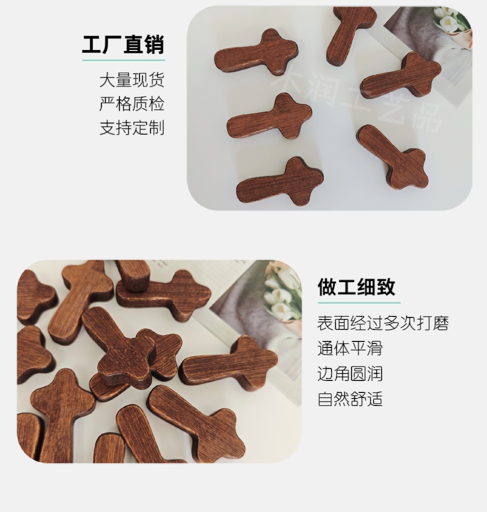 木质十字架美式胡桃木手把件拇指十字架教堂复活节手把件跨境厂家 投诉