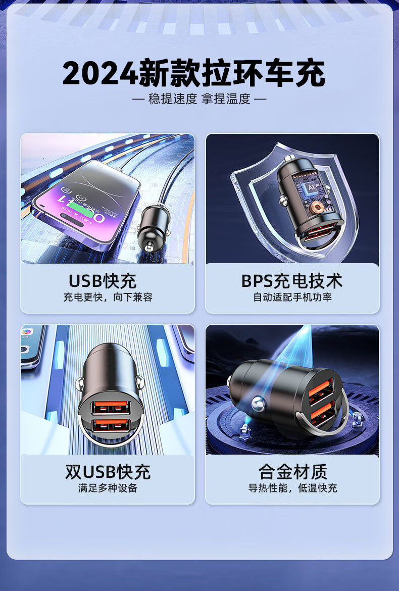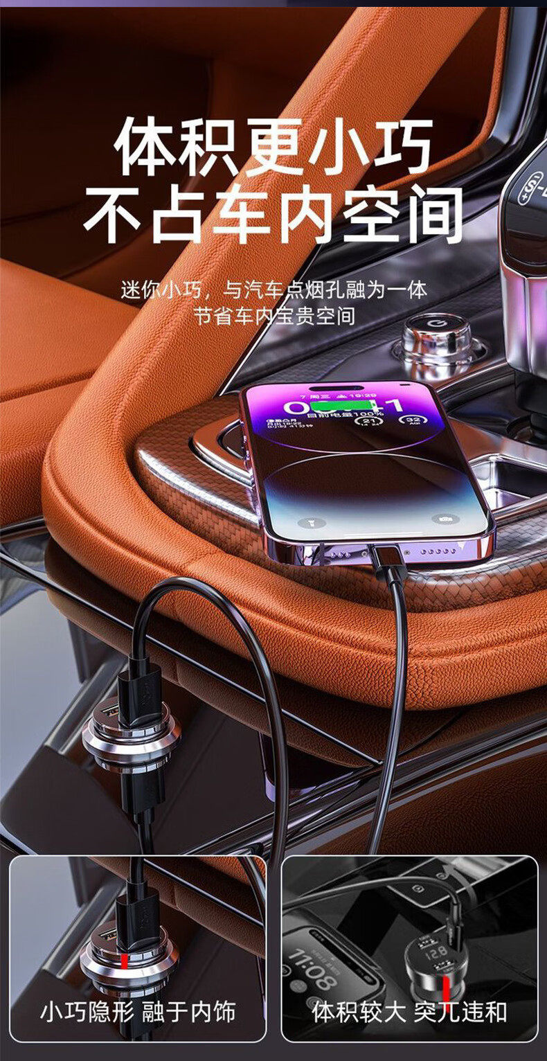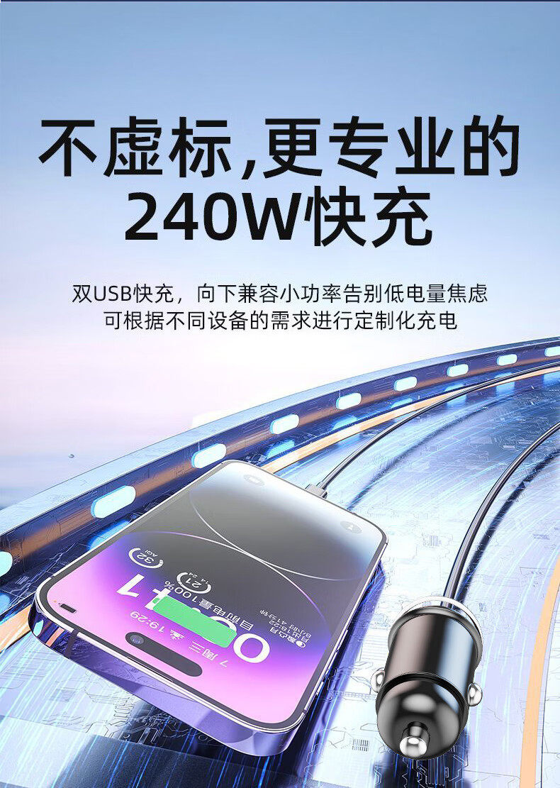 新款240W车载充电器超级快充隐形12V24V点烟器一拖二USB转换插头 投诉