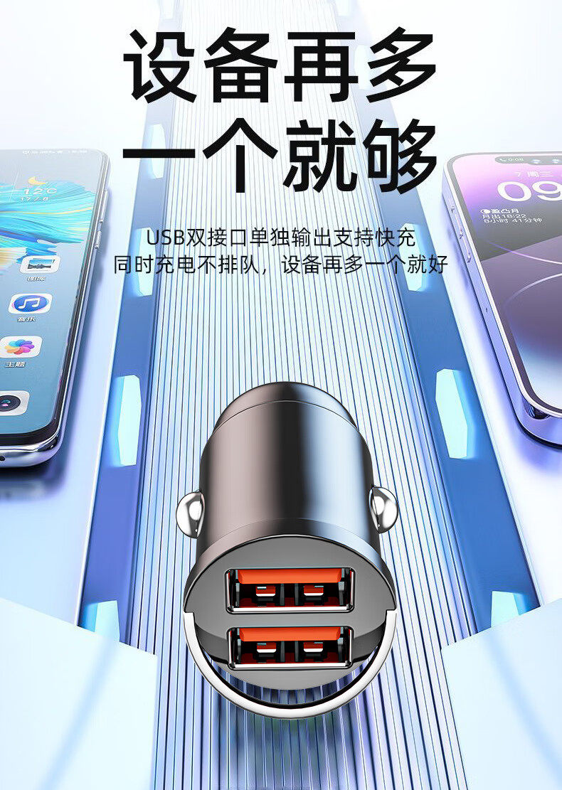 品牌: XAYVG/小优格 加工定制: 是 输出电流: 5000mA 输出接口: USB 产品认证: CE,FCC,ROHS,PSE,UL 货号: G50S 有可授权的自有品牌: 是 是否跨境出口专供货源: 是 类型: 迷你型,一拖二点烟器 充电类型: 快速充电 充电方式: 有线充电 是否数显: 否 最大输出功率: 240w 专利类型: 实用新型专利 是否专利货源: 是 电源方式: 点烟器电源 专利号: 2002222747648.8 输出功率: 240w 重量: 0.384 kg/套