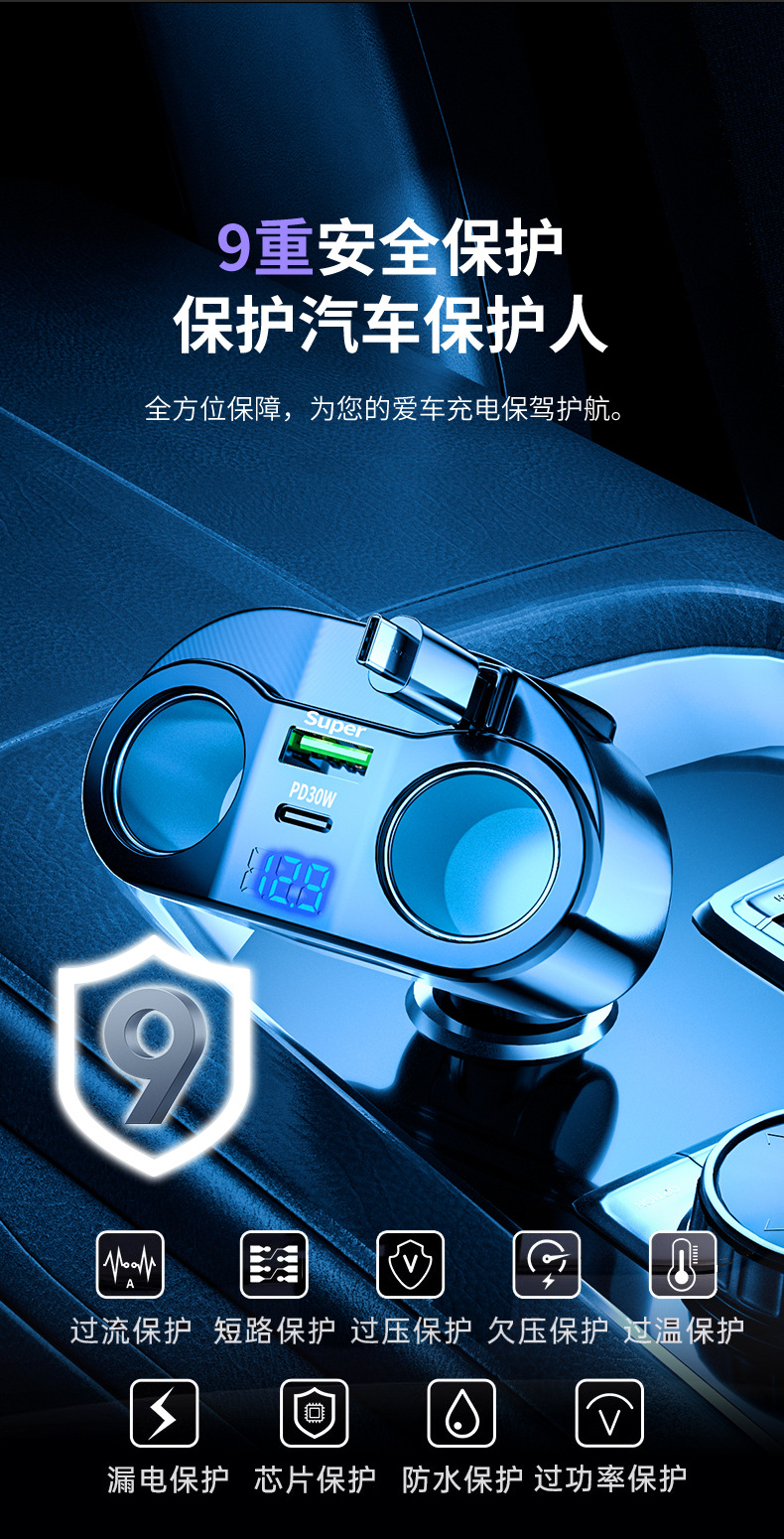 【双点烟孔扩展】QC3.0+3.1A数显版 ¥1500 8787套可售