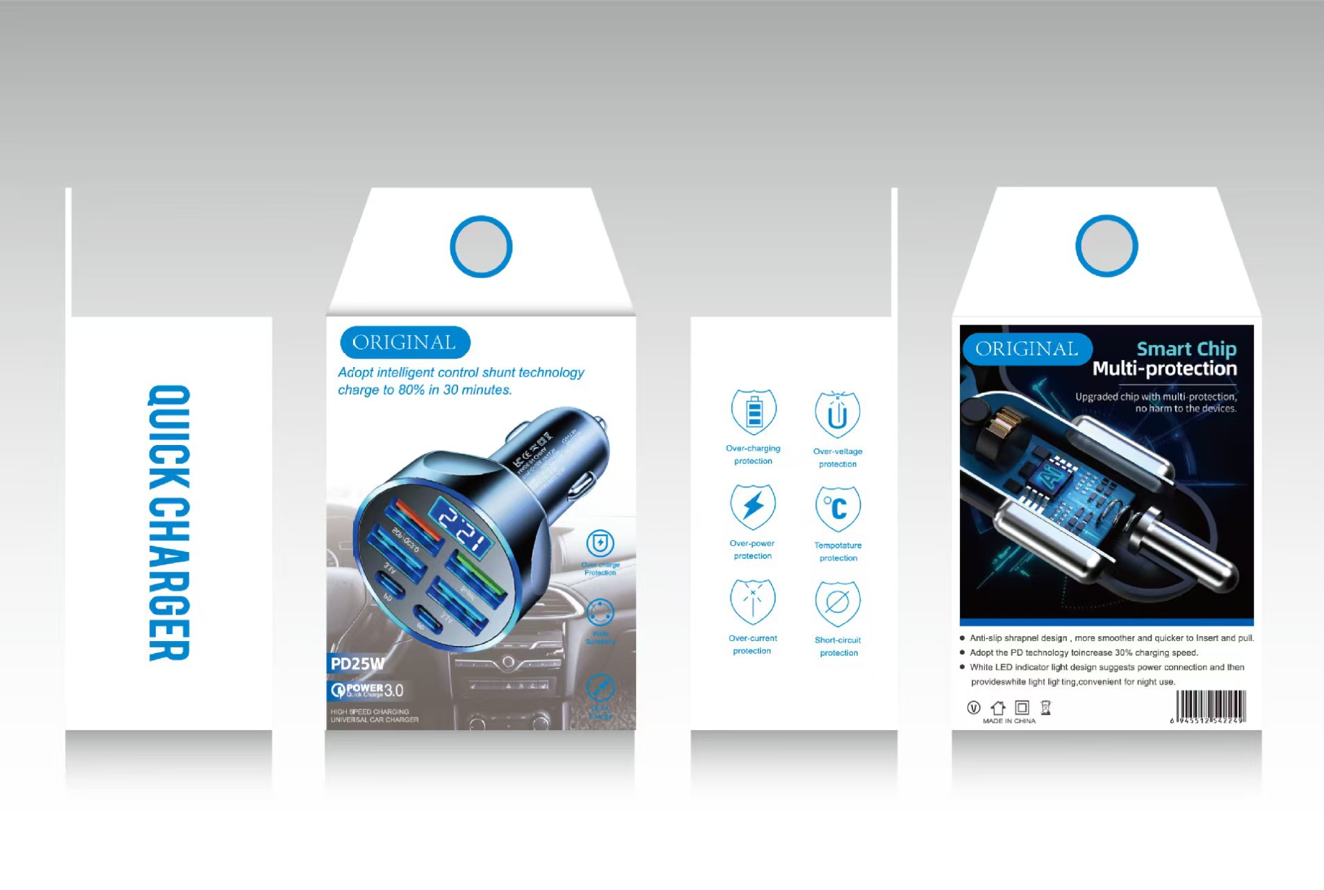 加工定制: 是 输出电流: 4000mA 输出接口: 4USB+2PD 主要下游平台: 其他 主要销售地区: 其他 有可授权的自有品牌: 是 是否跨境出口专供货源: 是 类型: 迷你型,点烟器 充电类型: QC3.0快充 充电方式: 有线充电 是否数显: 是 是否专利货源: 否 重量: 0.494 kg/套