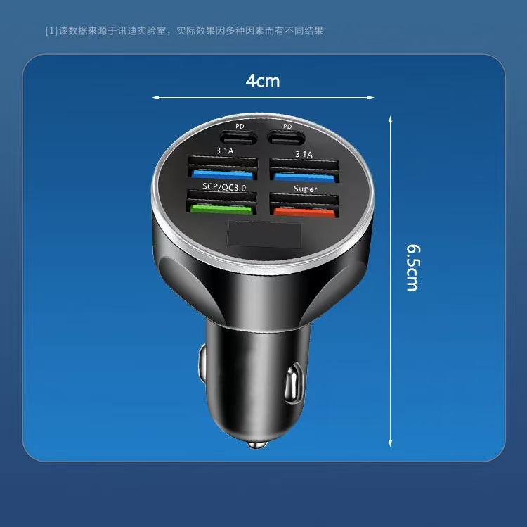 新款6口数显车充66W快充六合一超级快充车载充电器PD手机充电头