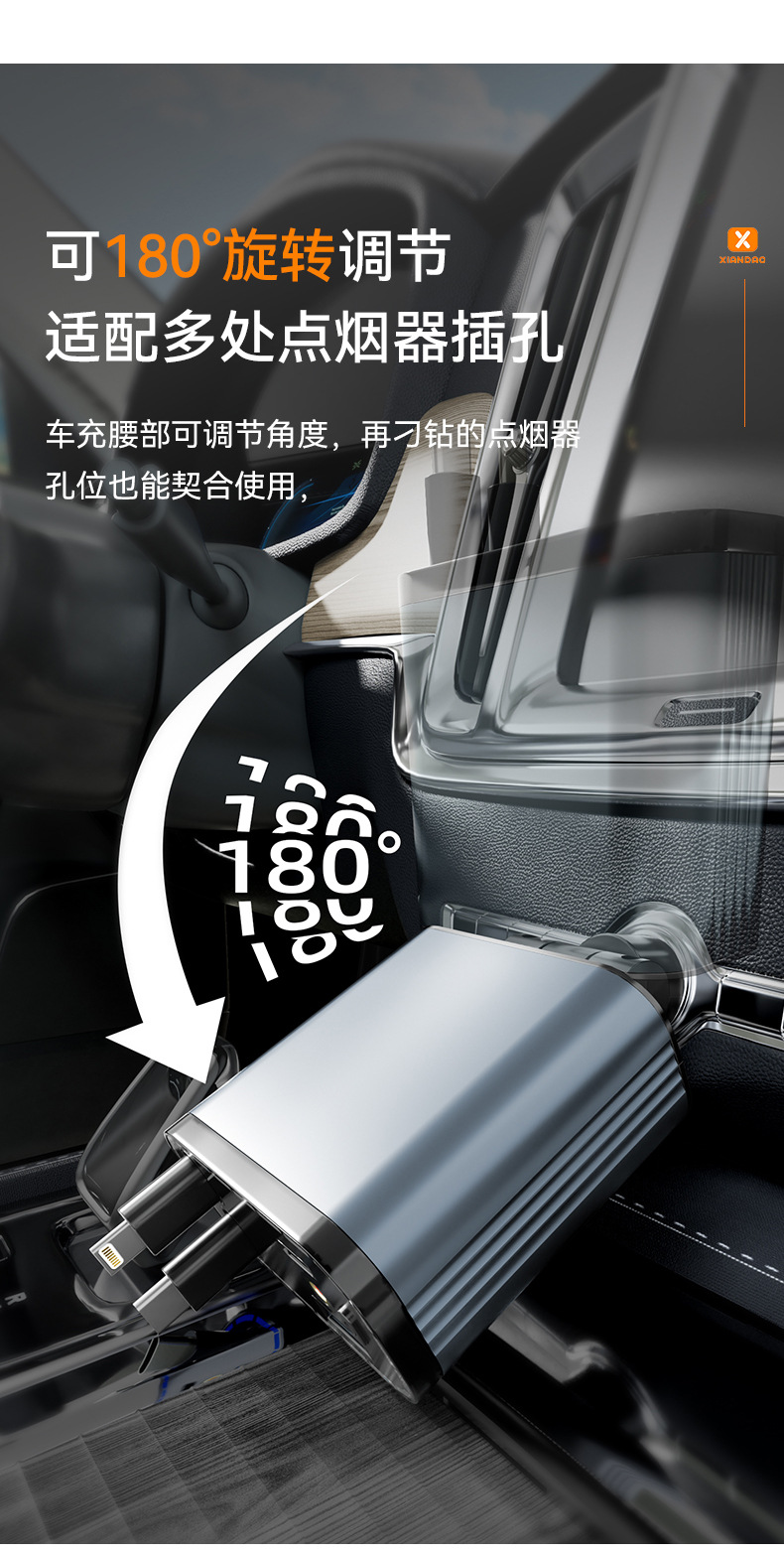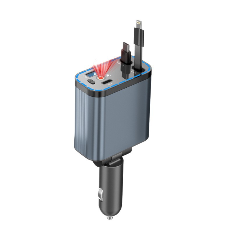 车载手机充电器120W超级快充汽车点烟器车充铝合金带伸缩线星空顶