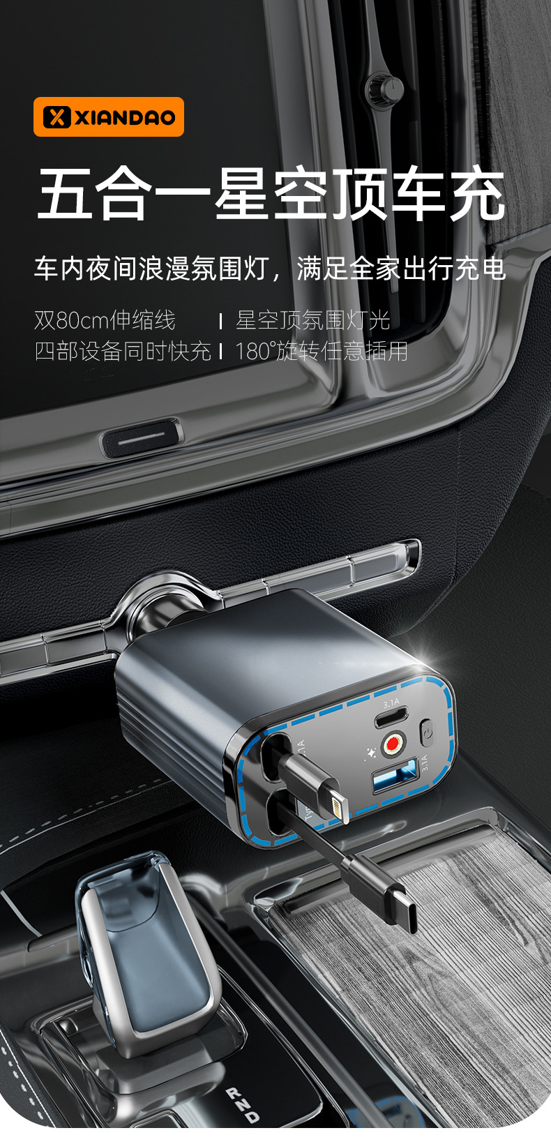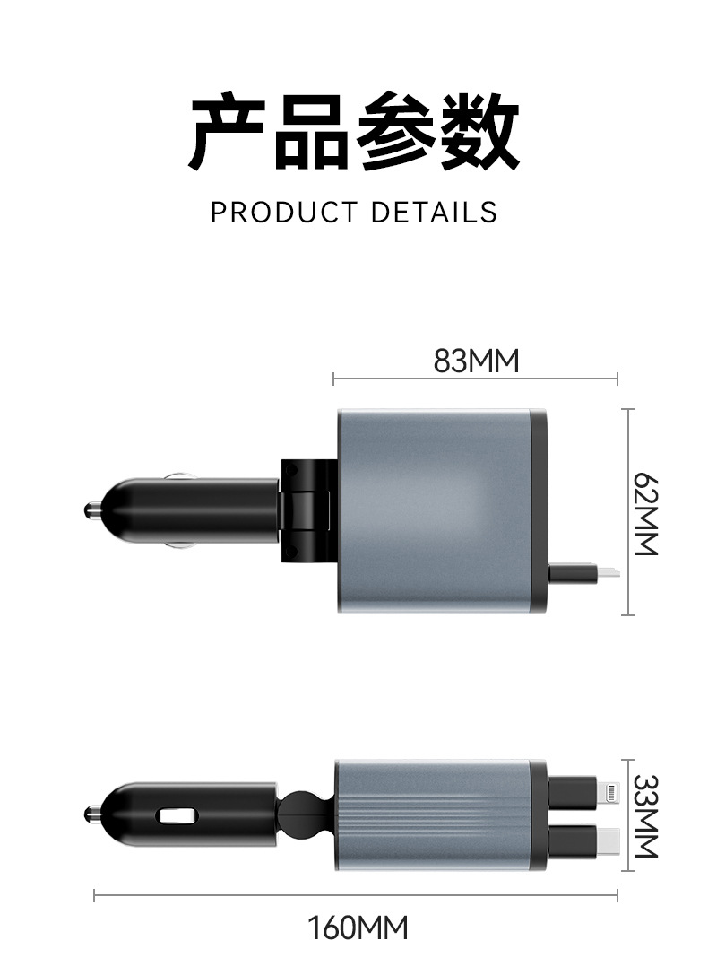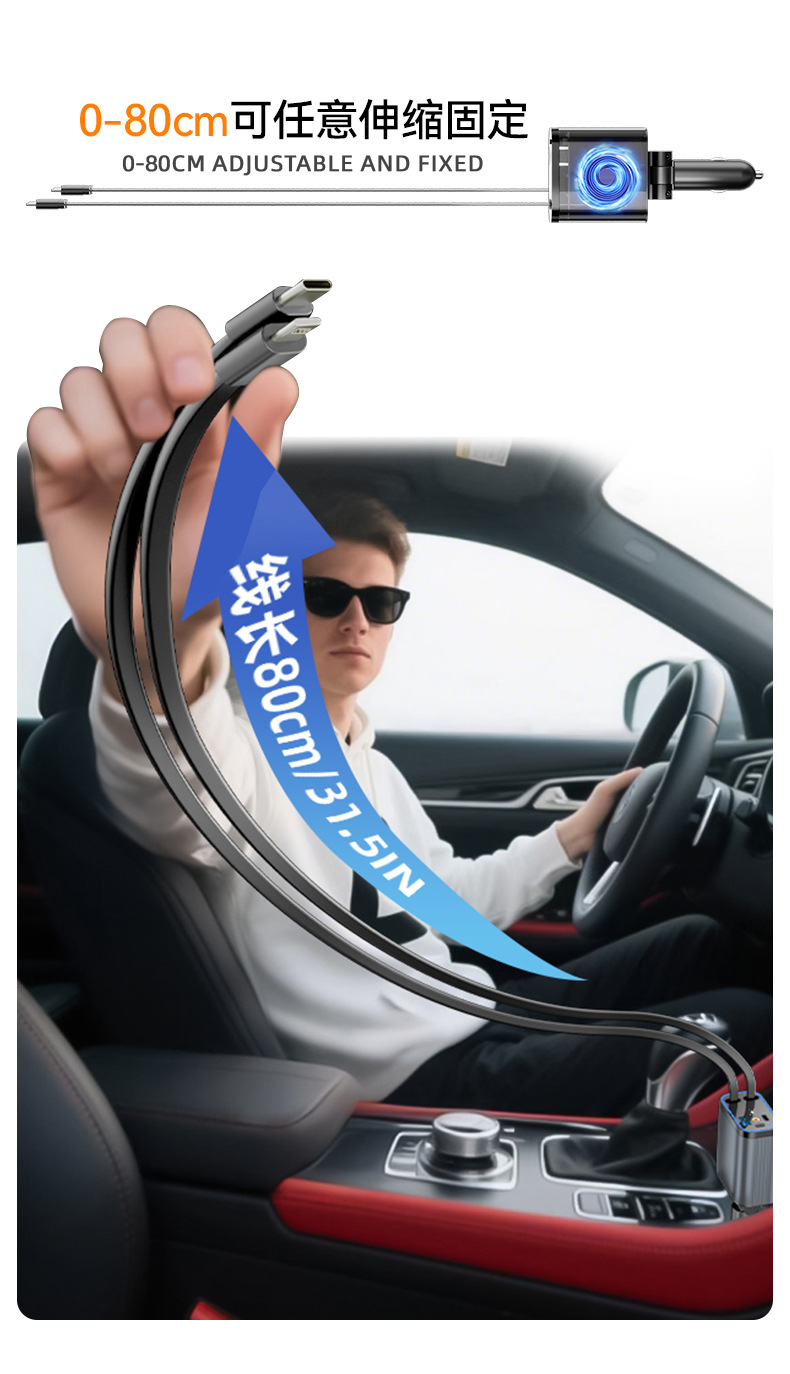 车载手机充电器120W超级快充汽车点烟器车充铝合金带伸缩线星空顶 投诉