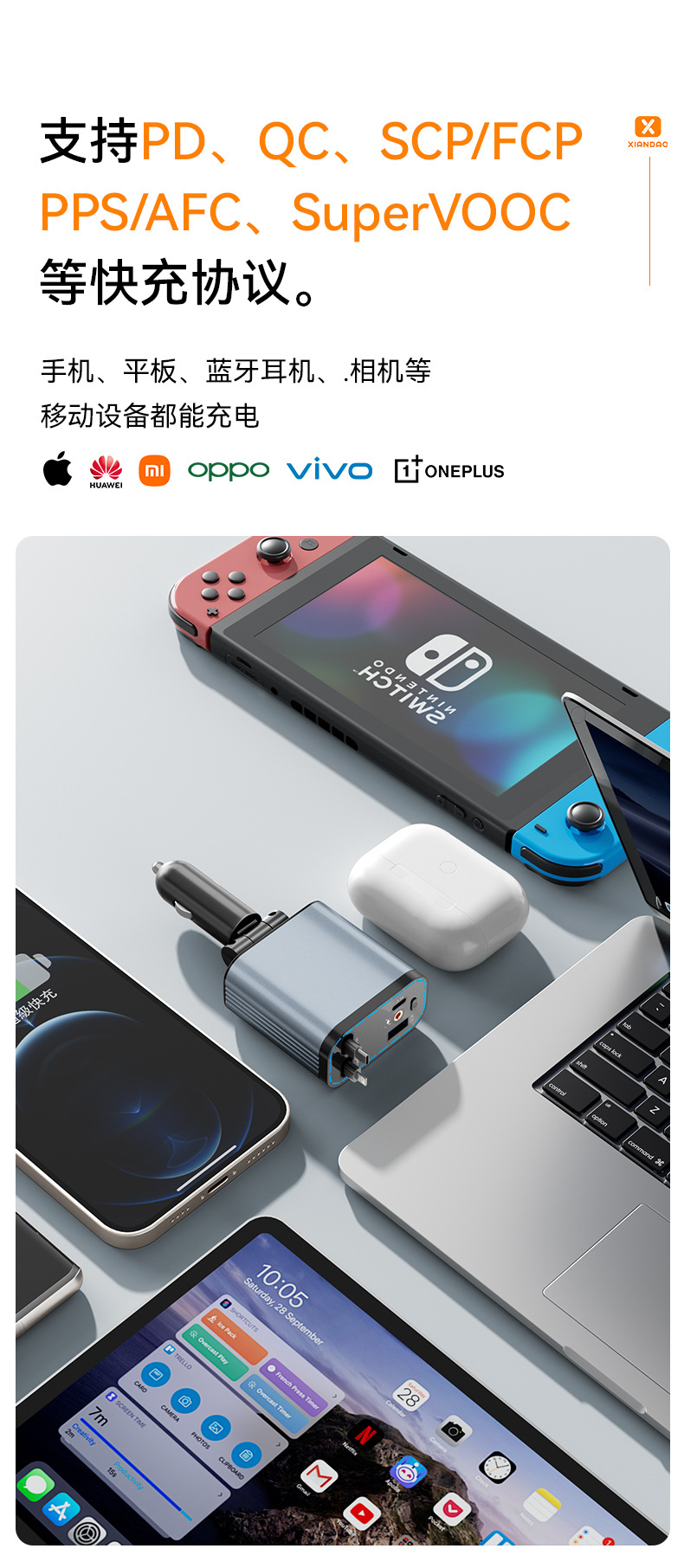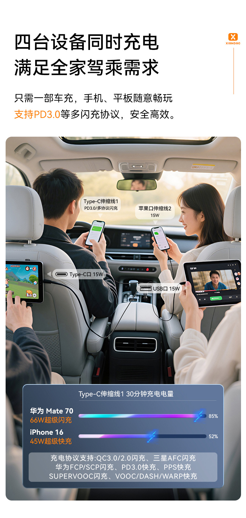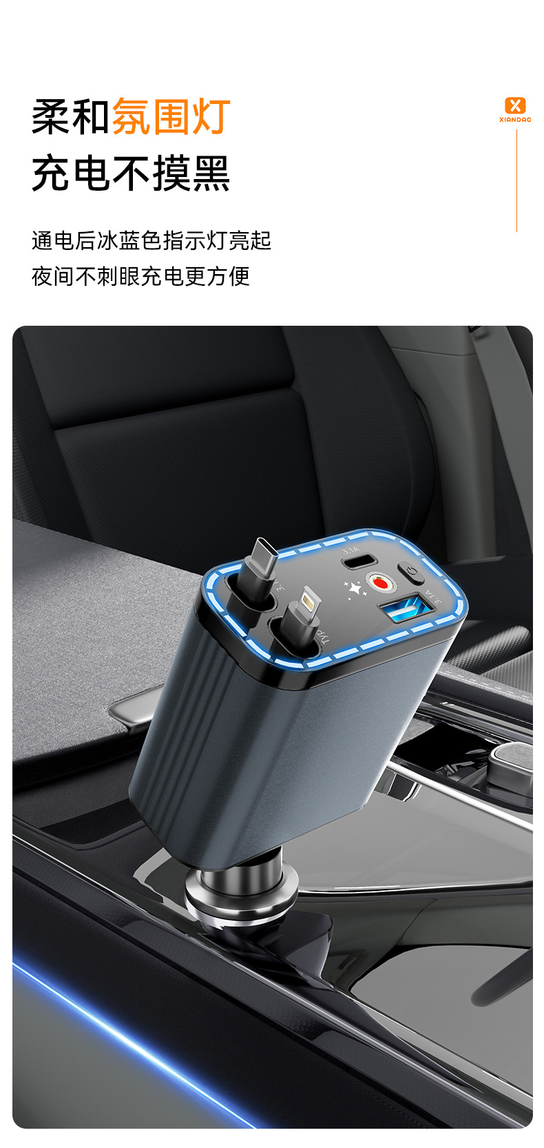 车载手机充电器120W超级快充汽车点烟器车充铝合金带伸缩线星空顶 投诉