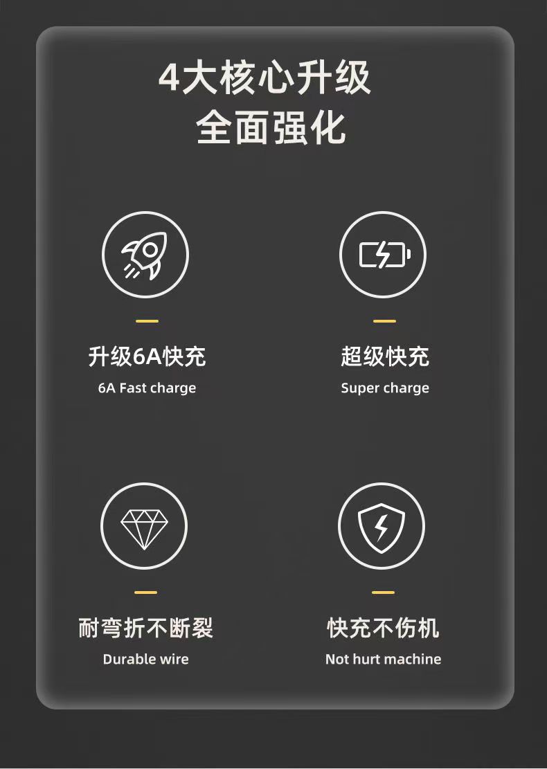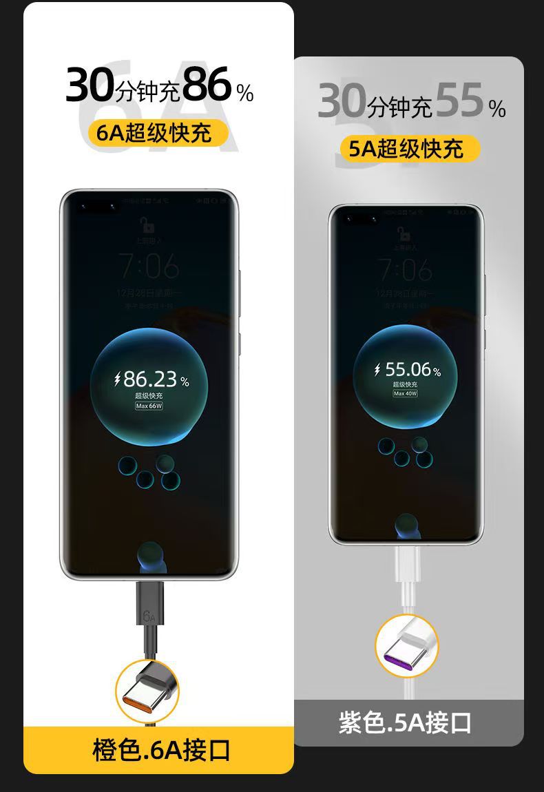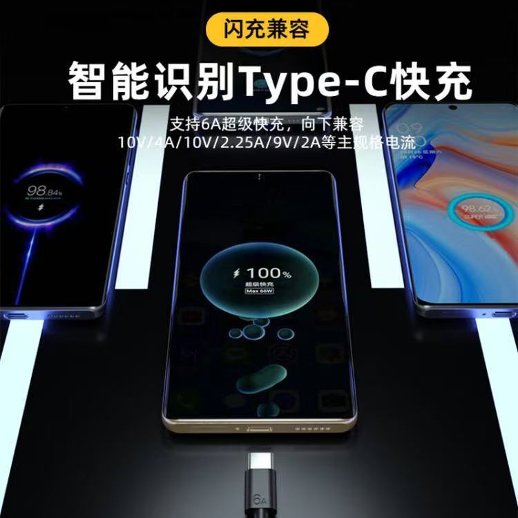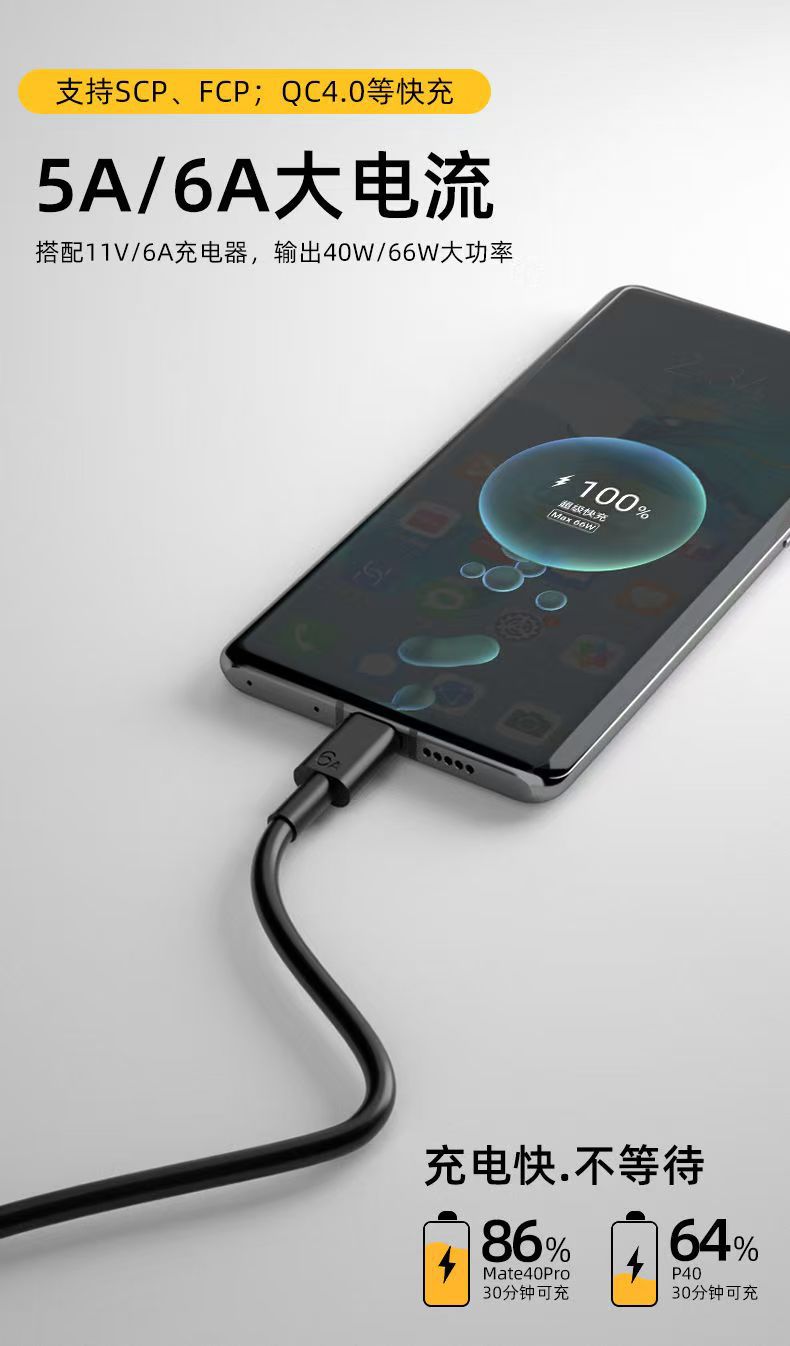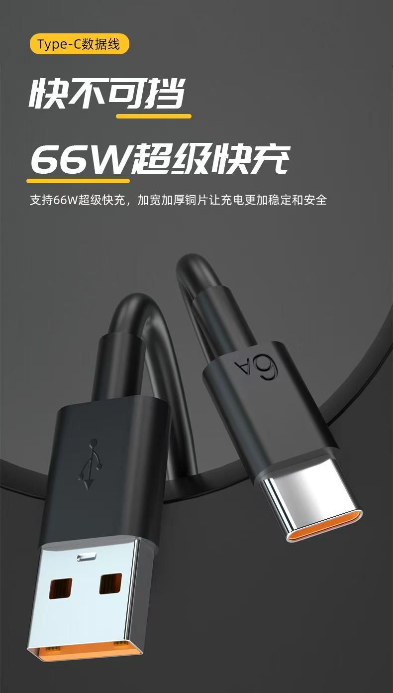 Type-c单头数据线闪充6A线typec适用于华为手机充电线快充礼品