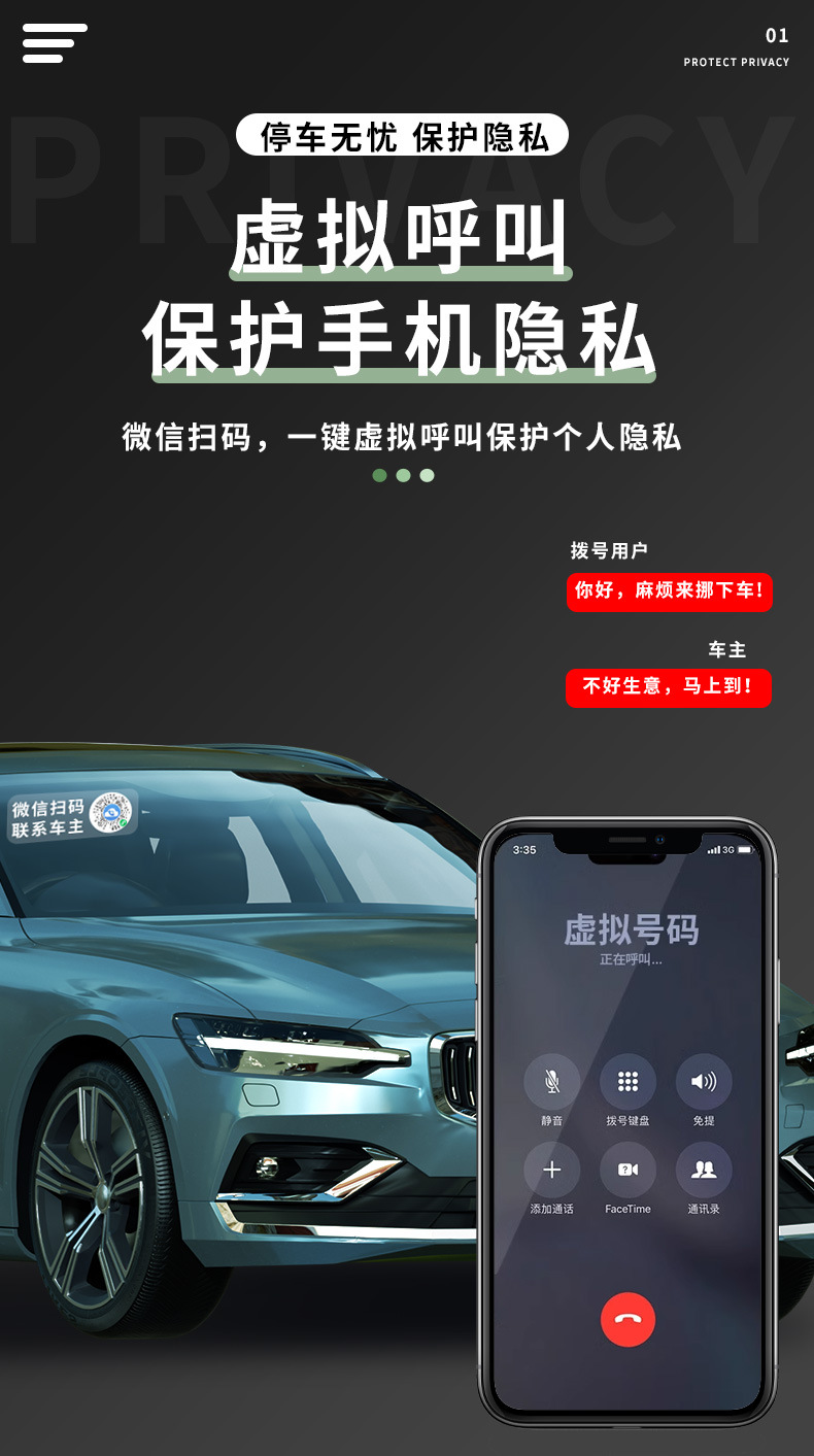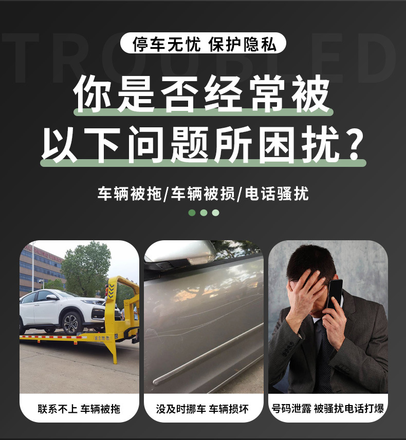 车载临时二维码停车牌静电贴挪车手机号牌汽车防晒夜光电话移车牌 投诉