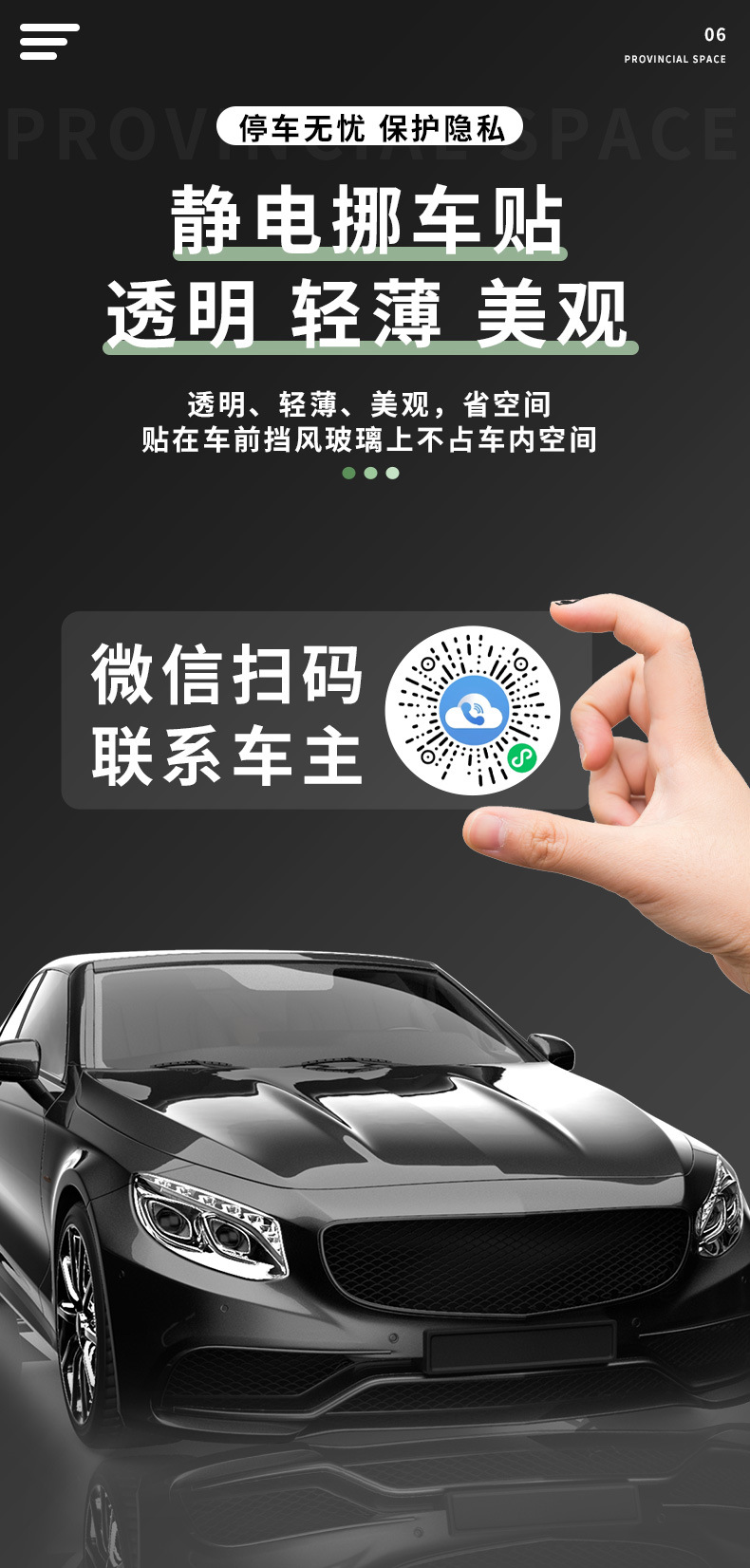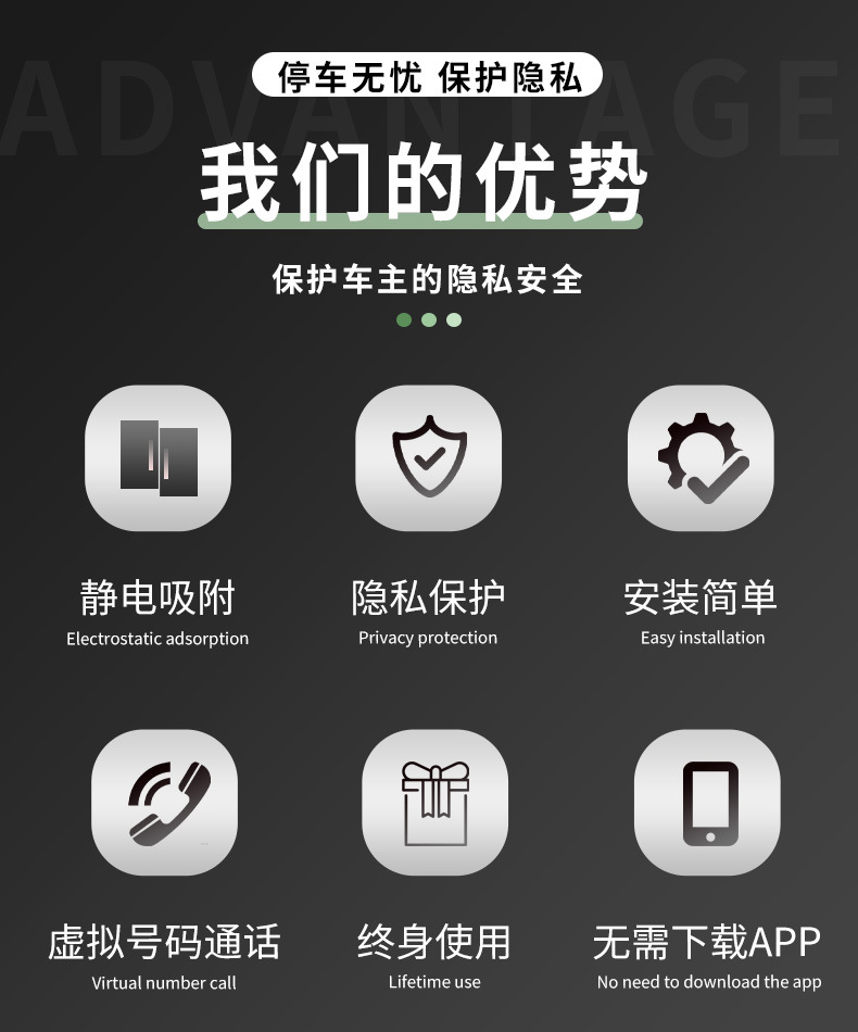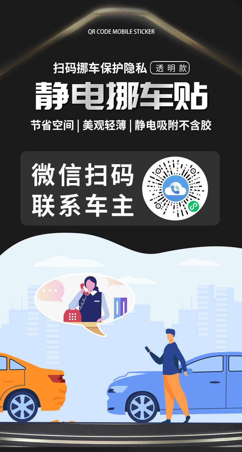 车载临时二维码停车牌静电贴挪车手机号牌汽车防晒夜光电话移车牌