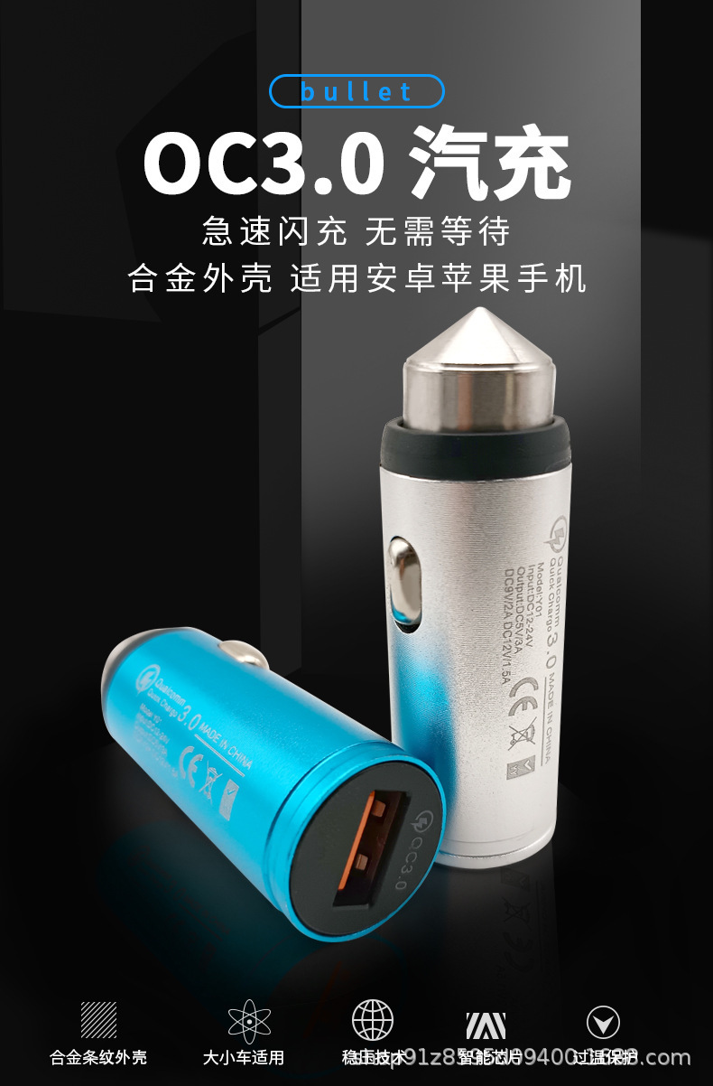 现货USB合金外壳子弹头QC3.0 20W车载快速充电器点烟口电源适配器 投诉