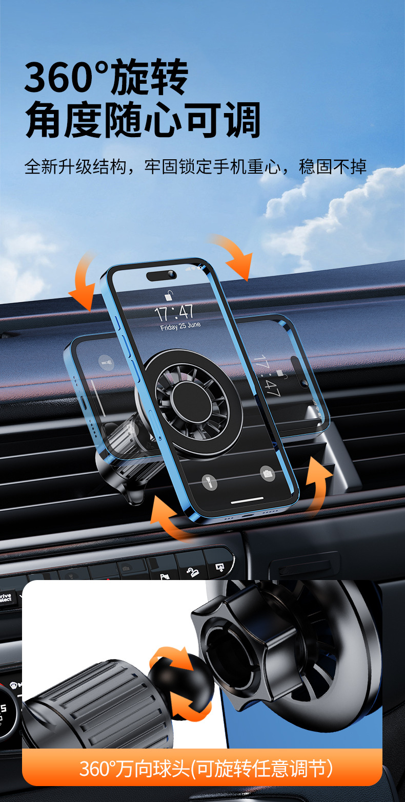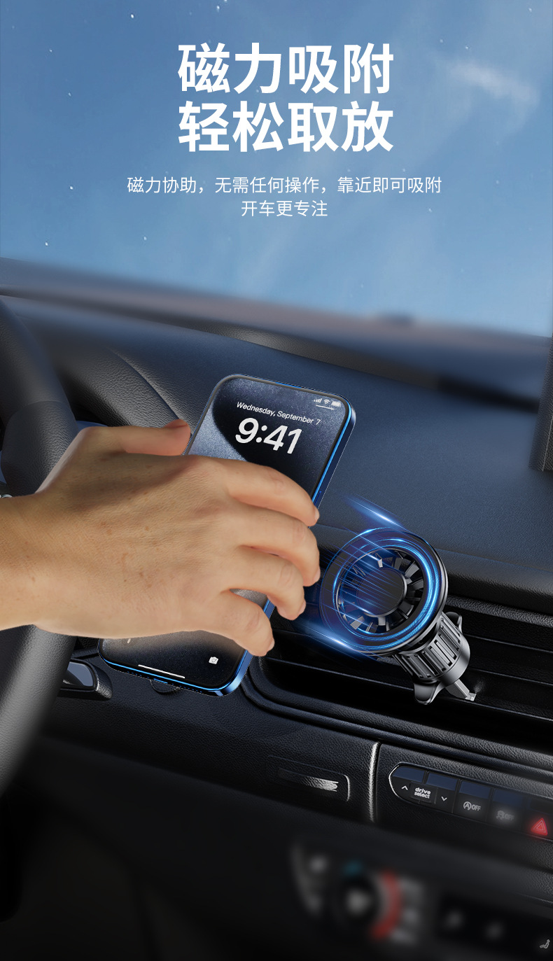 新款车载磁吸手机支架苹果magsafe汽车出风口导航万能固定支撑架