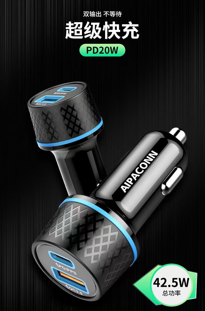 车载充电器快充pd38W汽车点烟器转换头源头工厂跨境
