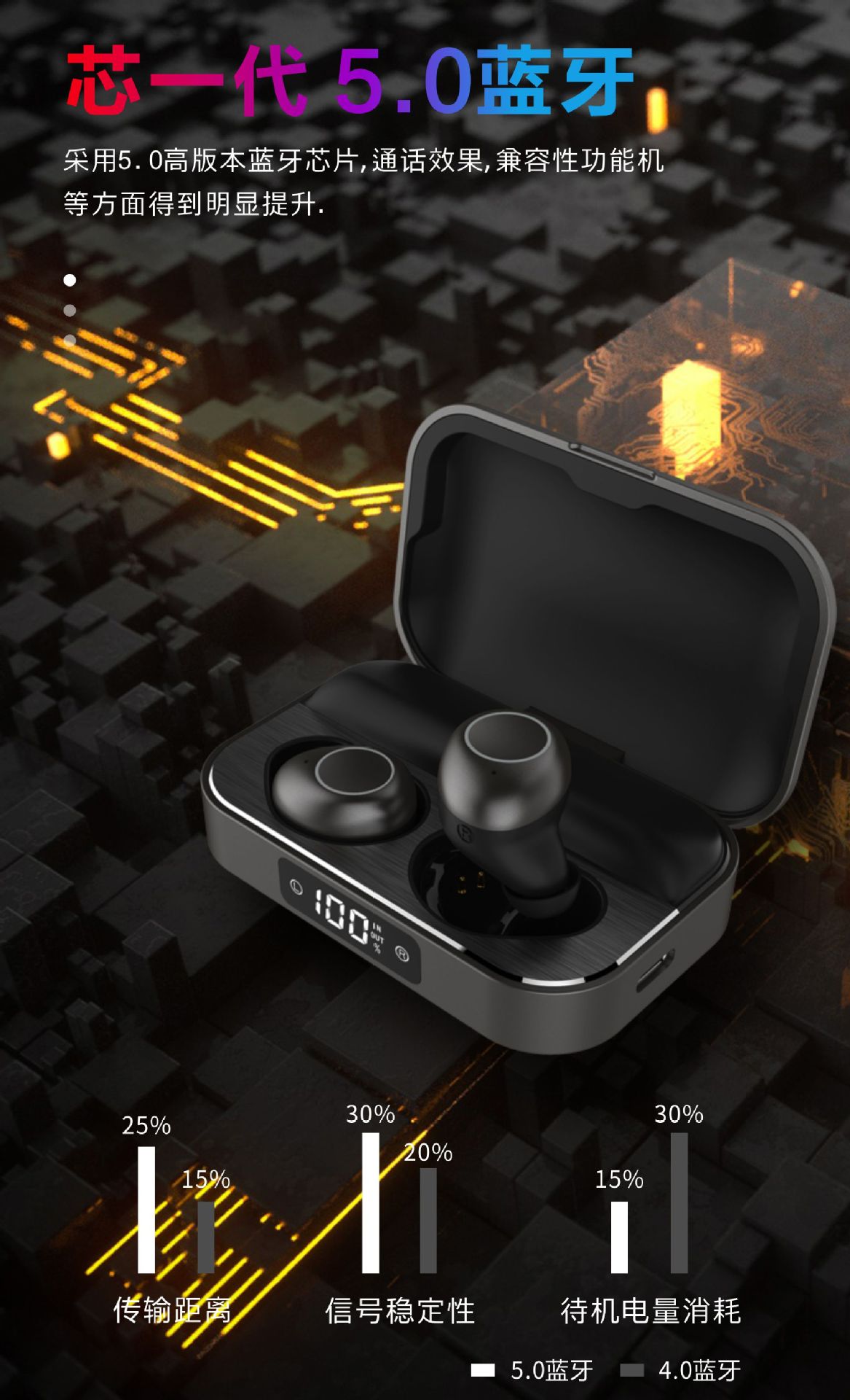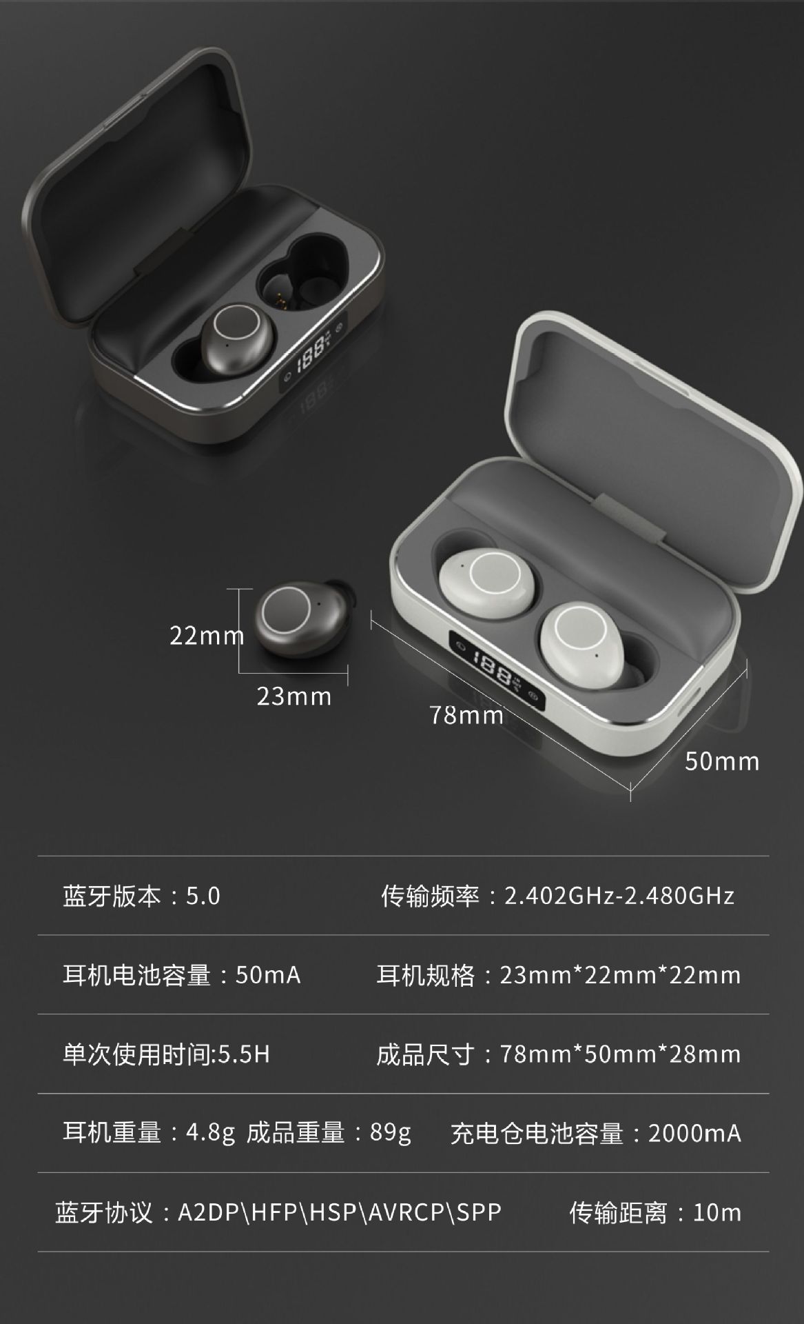 私模蓝牙耳机数显TWS入耳式耳塞式迷你运动真无线降噪5.2跨境新款