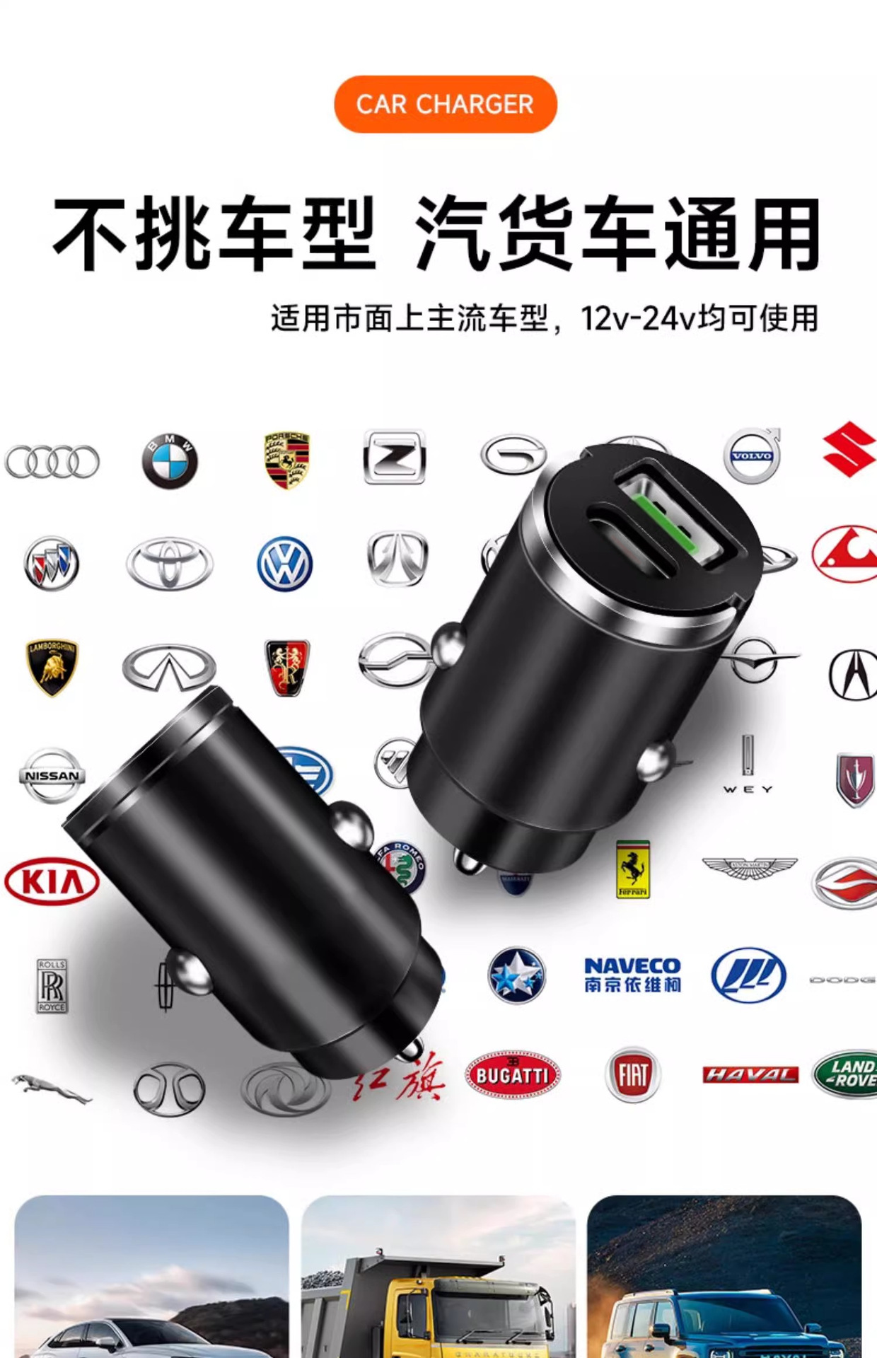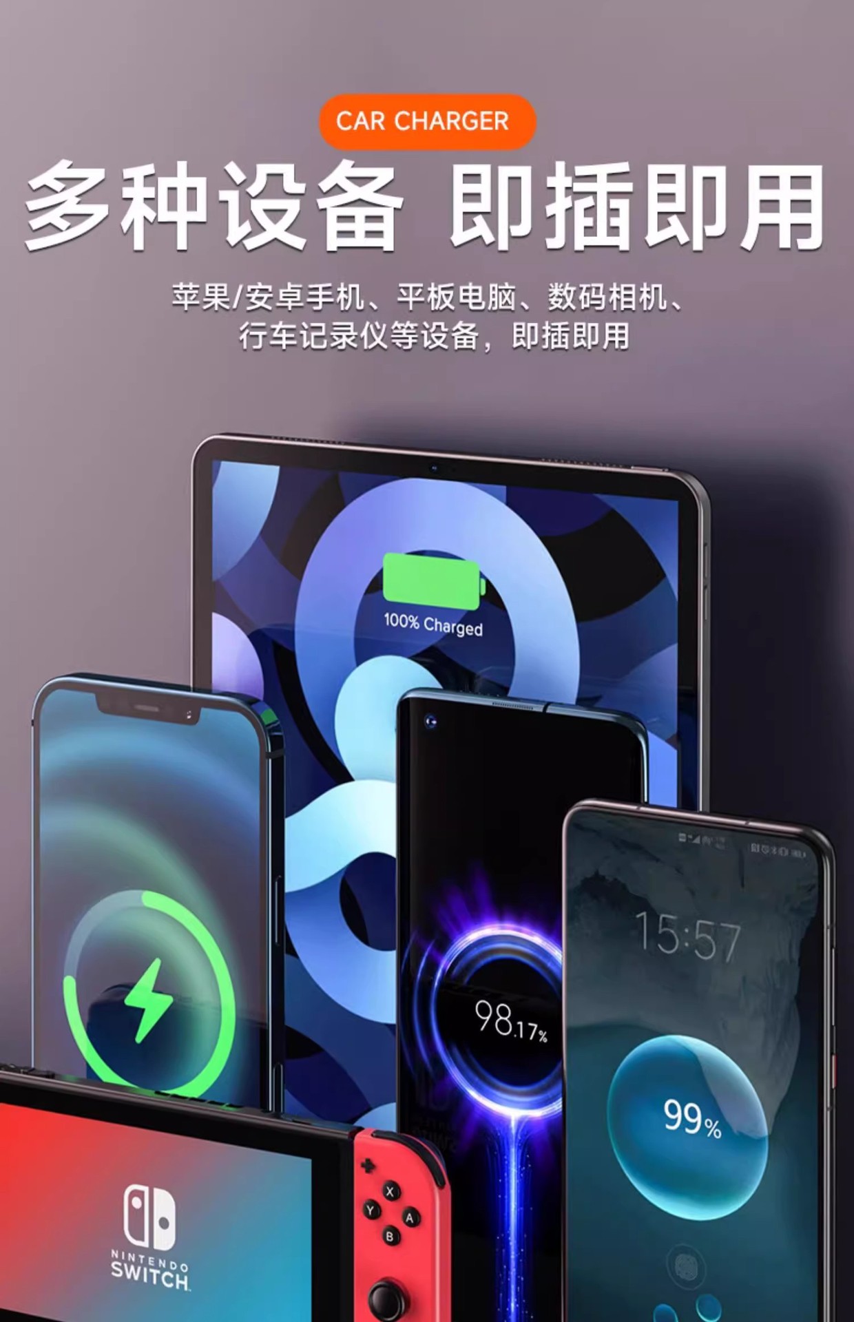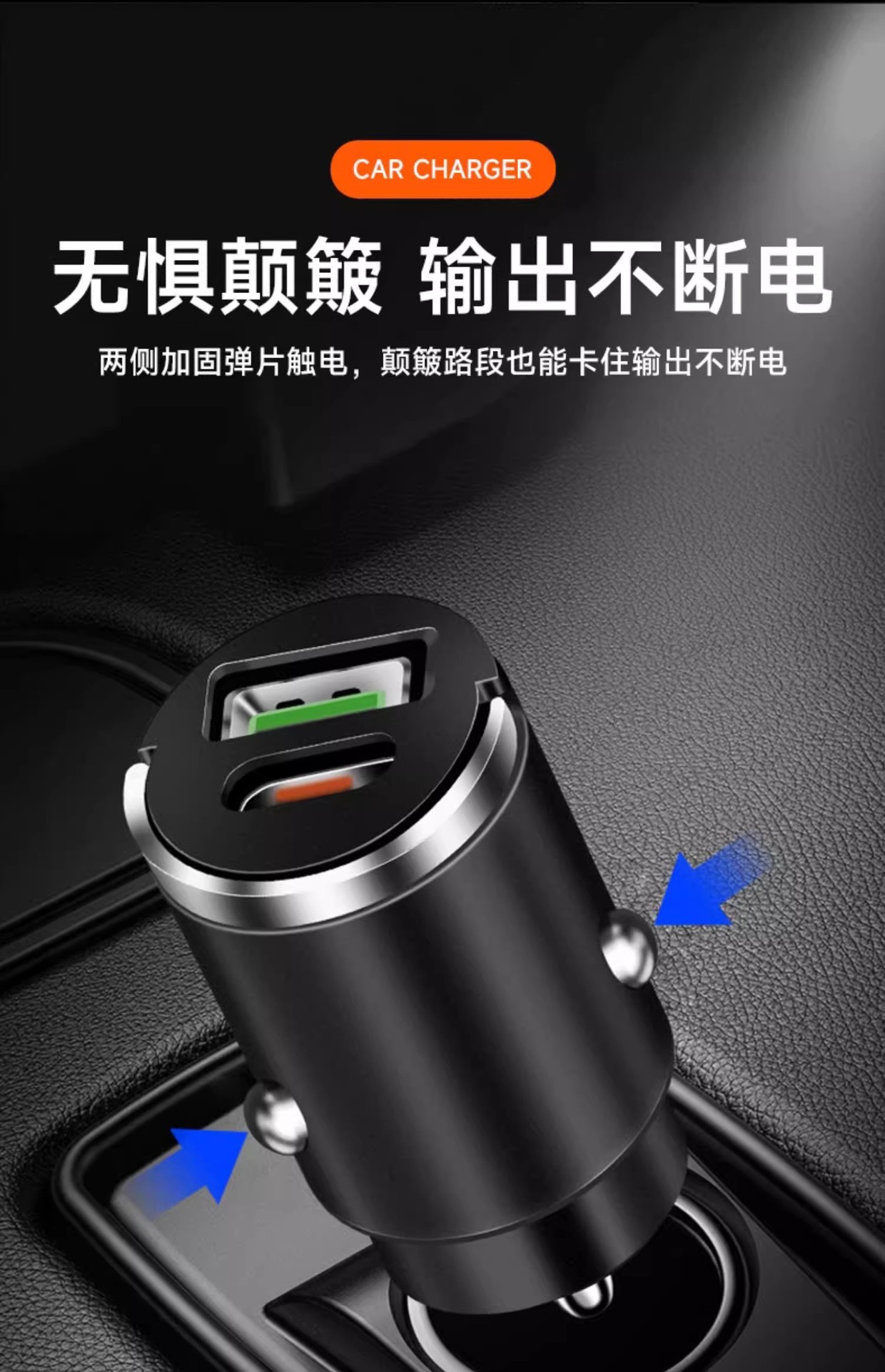 100W隐形车载手机充电器头超级快充一拖二车用点烟器PD30W多功能 投诉