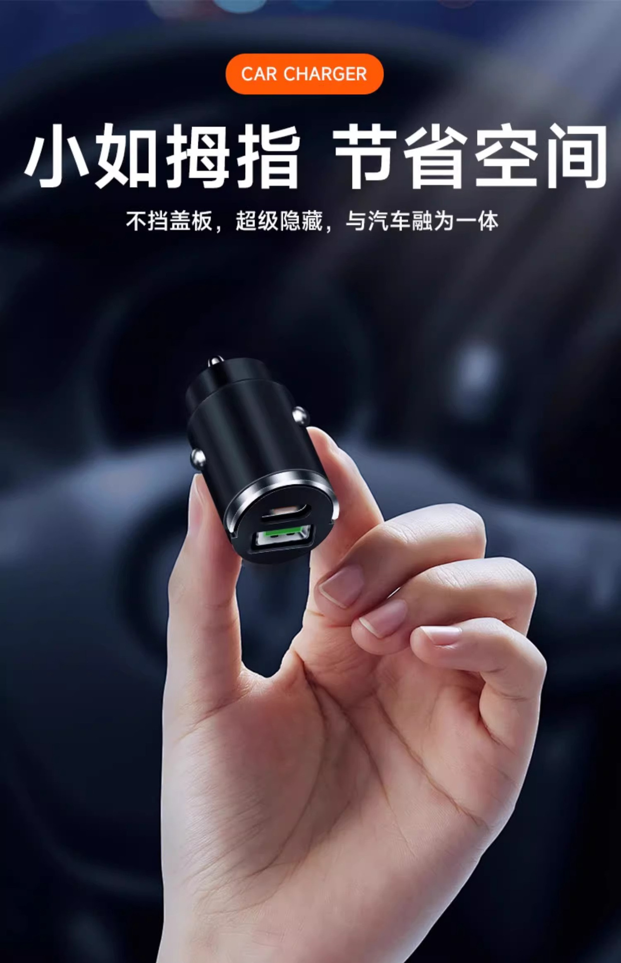 100W隐形车载手机充电器头超级快充一拖二车用点烟器PD30W多功能