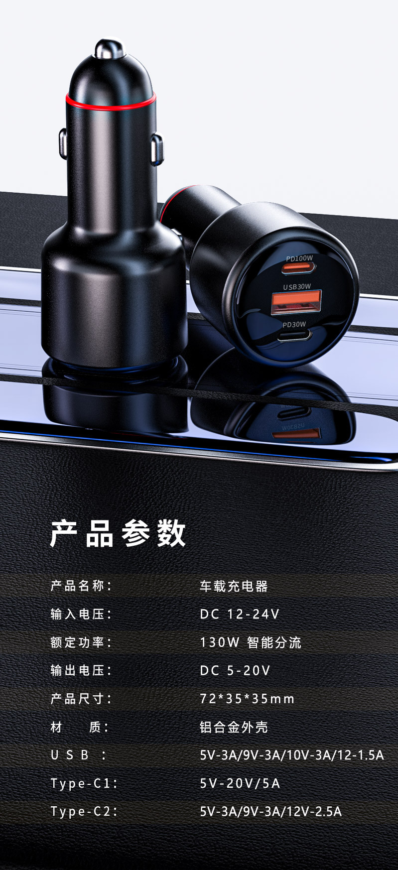 品牌: XAYVG 材质: 铝合金 产地: 深圳 加工定制: 是 输入电压: 12-24 输出电压: 5/9/12/15/20 输出电流: 10000 工作温度: 50 输出接口: USB/TYPE-C 适用充电范围: 手机/平板/笔记本电脑等数码产品 产品尺寸: 72*35*35cm 货号: P6CAC 有可授权的自有品牌: 是 是否跨境出口专供货源: 是 类型: 点烟器 充电类型: 快速充电 充电方式: 有线充电 重量: 0.101 kg/个