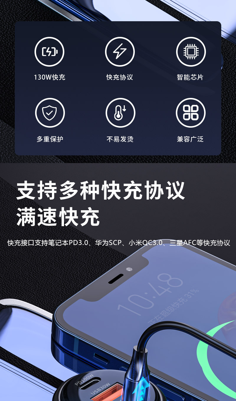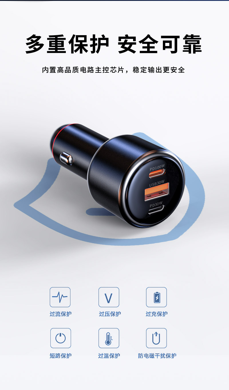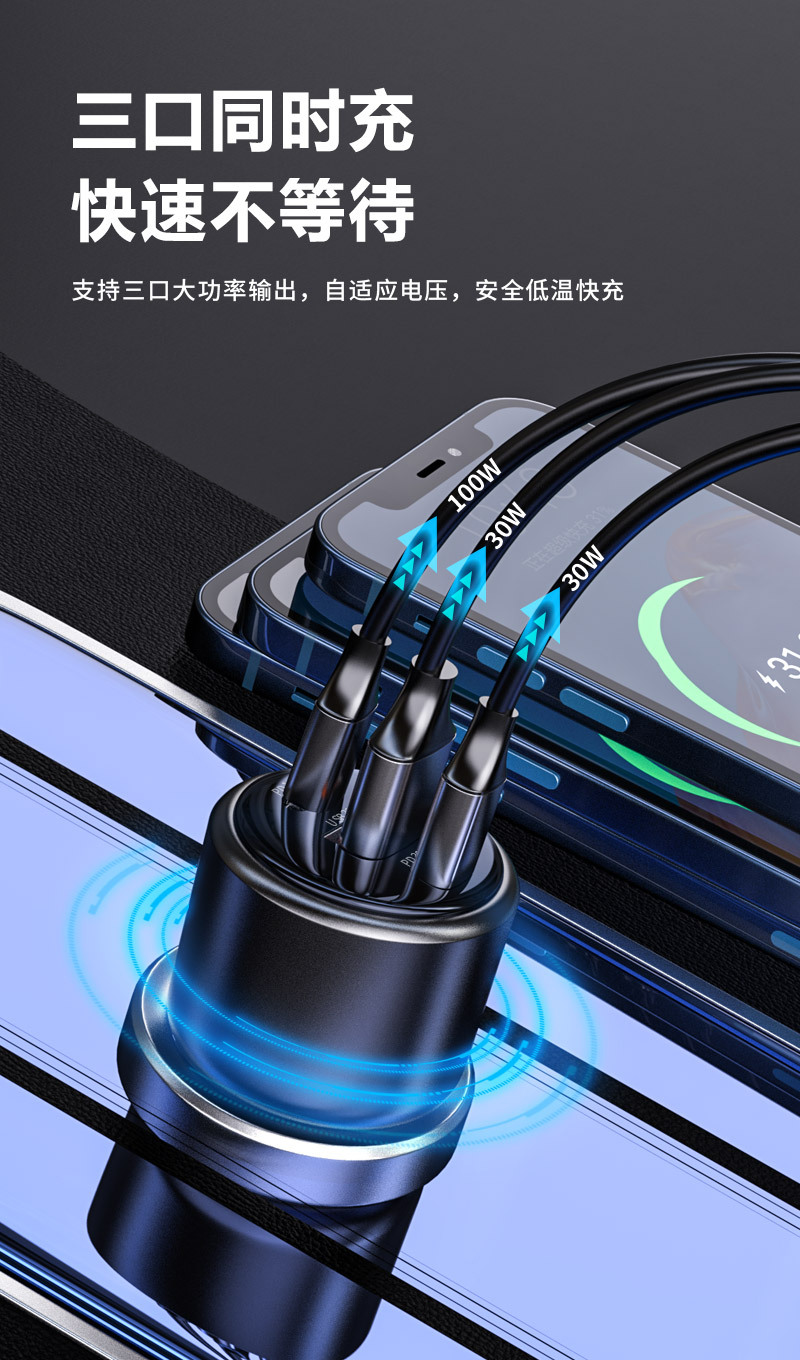 新款车载充电器pd100w超级快充汽车用多功能点烟器一拖二转换插头 投诉