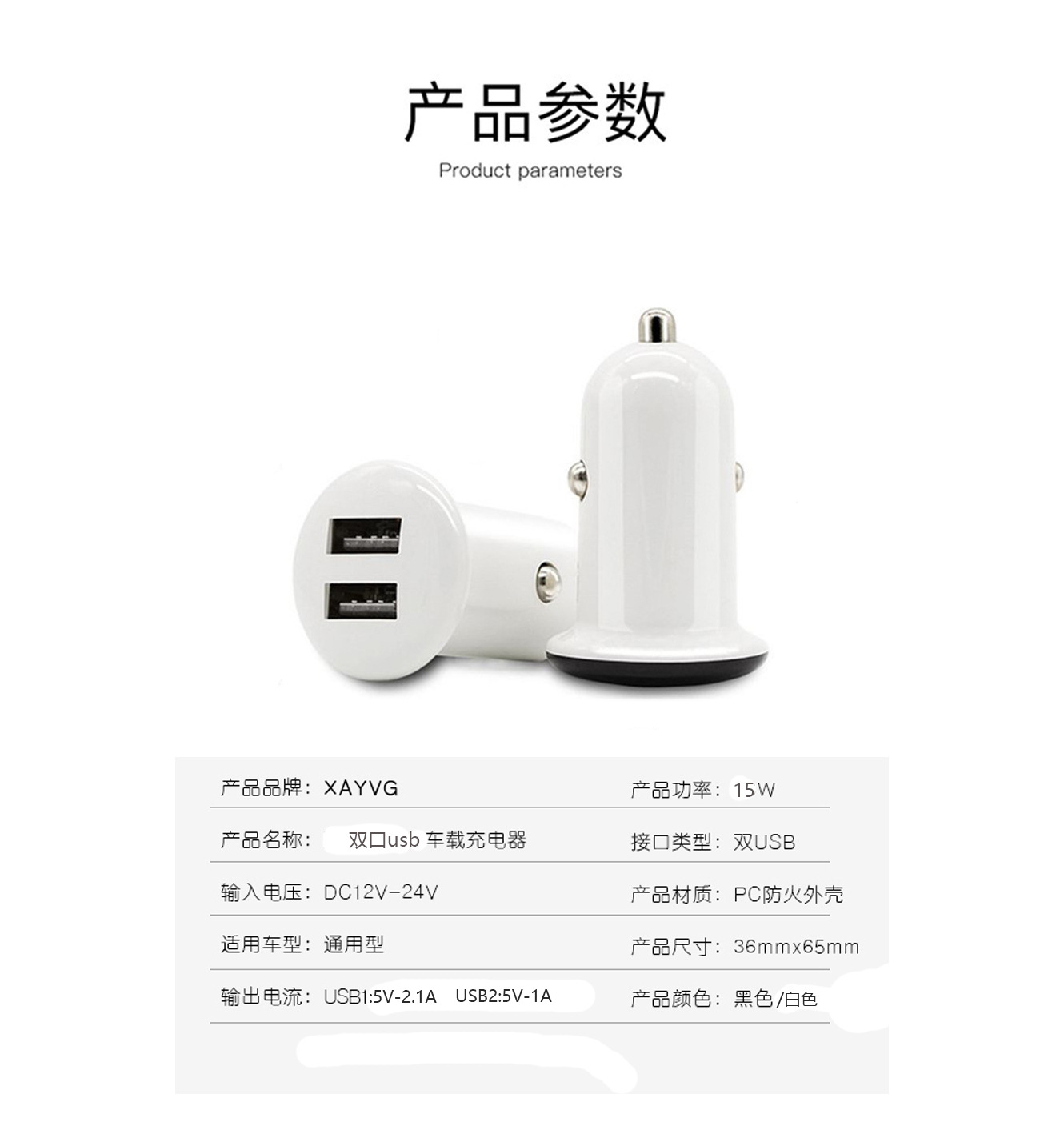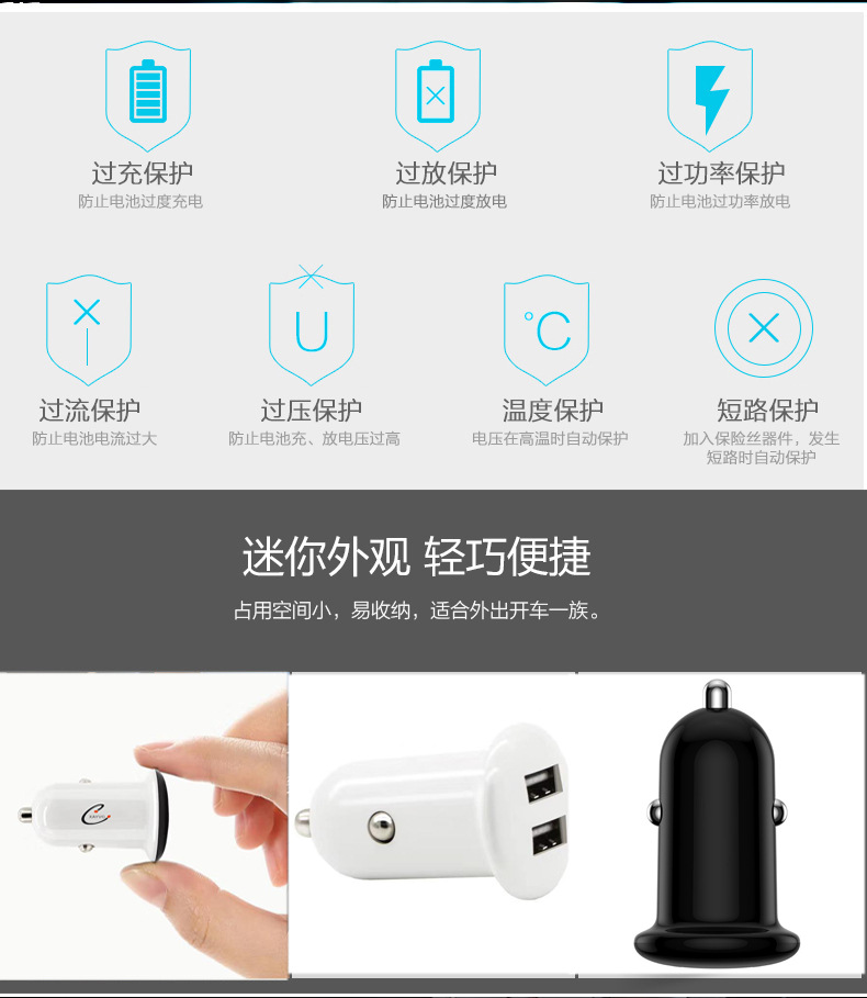 品牌: XAYVG 加工定制: 是 输出电流: 3100 输出接口: 双usb 产品认证: CE,FCC,ROHS 产品尺寸: 45*26*26 货号: R1S 有可授权的自有品牌: 是 是否跨境出口专供货源: 是 颜色: 黑色,白色 类型: 迷你型 充电类型: 快速充电 充电方式: 有线充电 是否数显: 否 最大输出功率: 15w 是否专利货源: 否 输入电压: 12-24 输出功率: 15w 工作温度: 42 重量: 0.326 kg/套