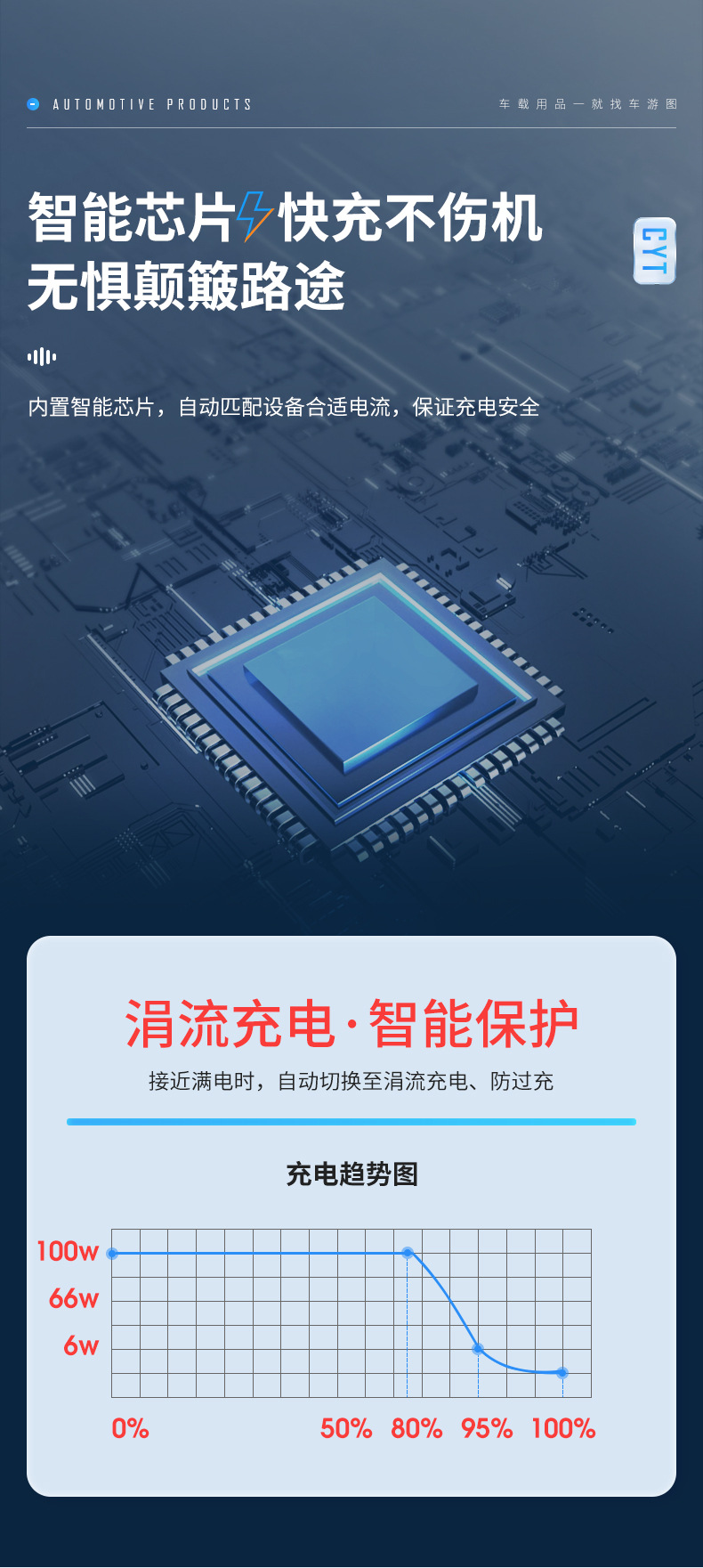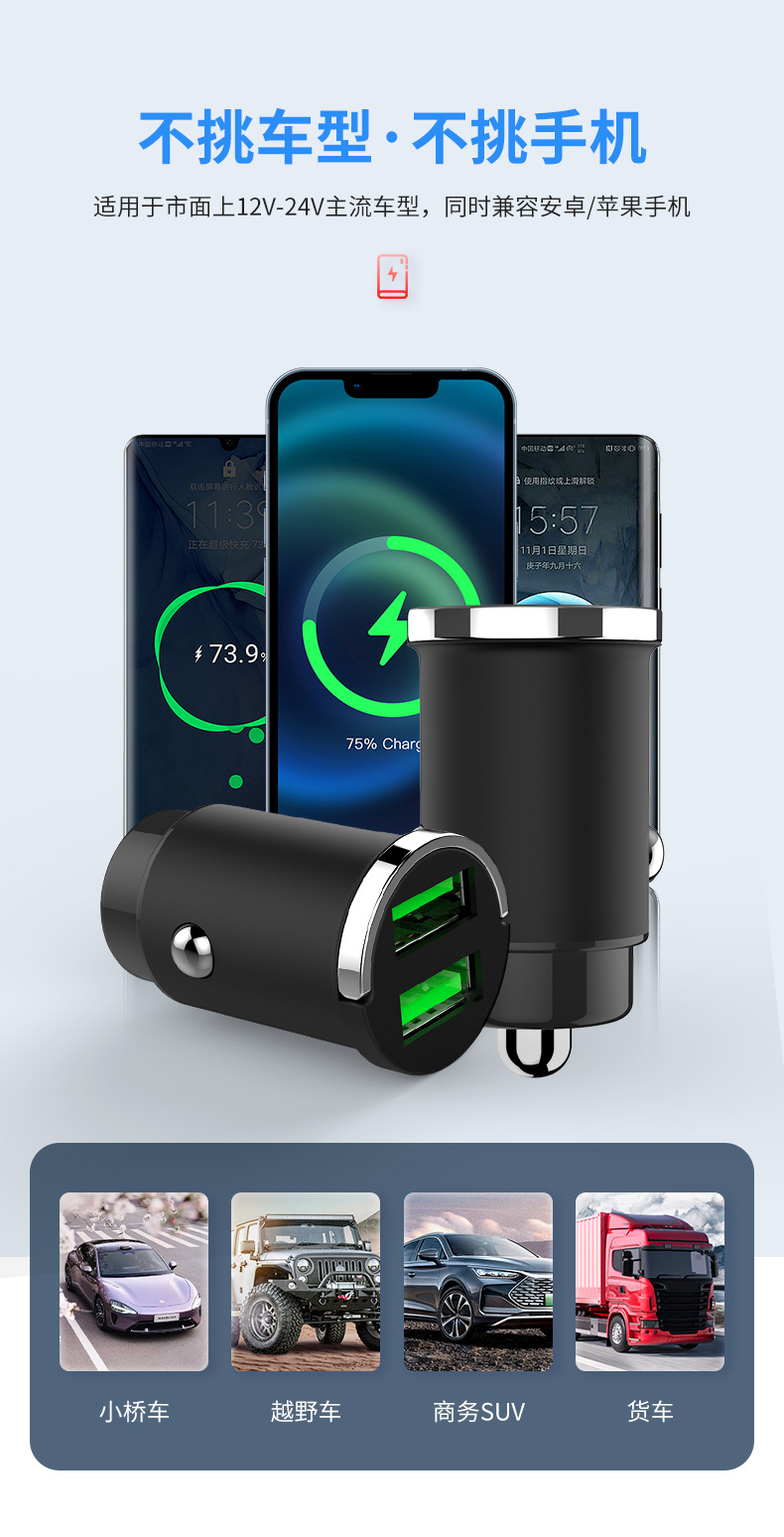 真100W车载充电器66W超级快充12-24V通用PD30W安卓车载隐形车充