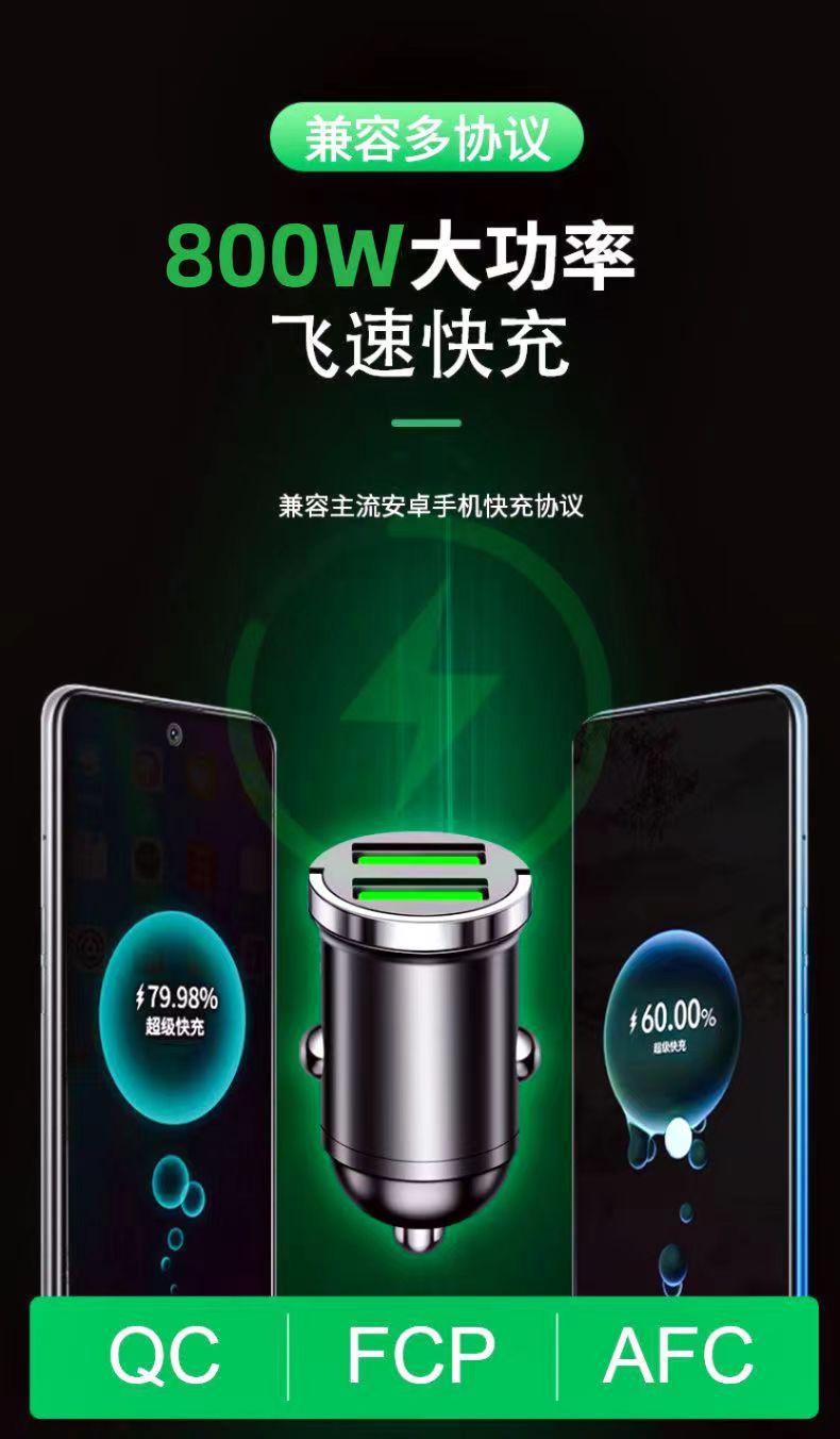 新款车载充电器锌合金材质迷你型华为超级快充苹果点烟器转换插