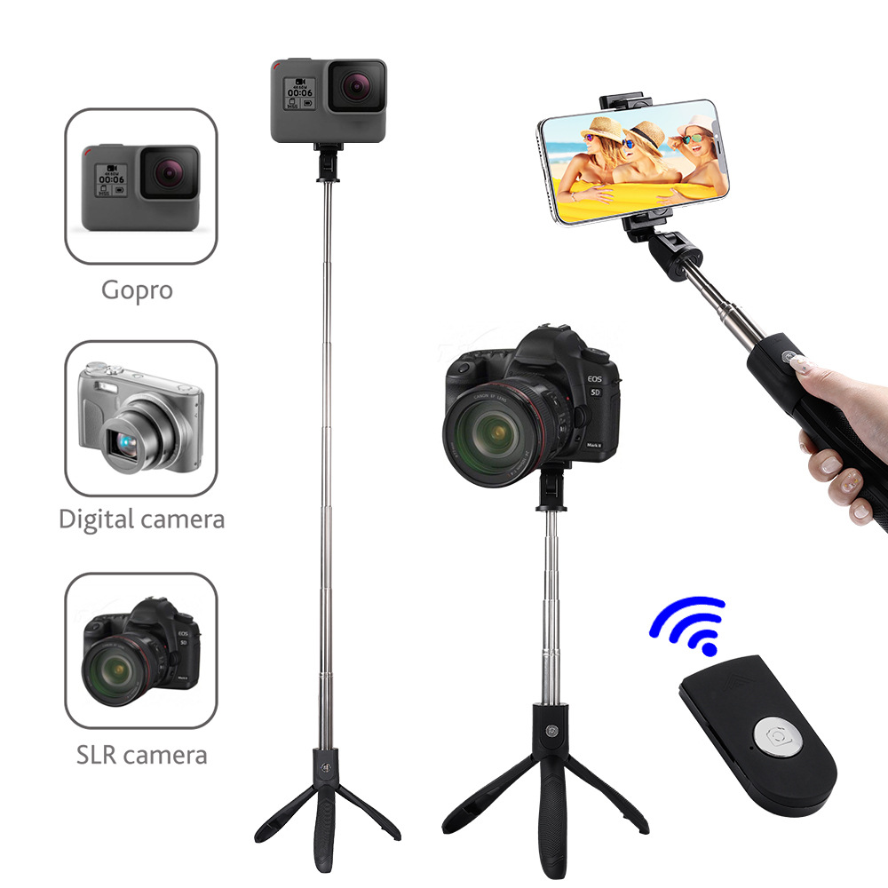 厂家批发自拍杆 三脚架自拍杆自拍神器横竖拍大后视镜蓝牙自拍杆