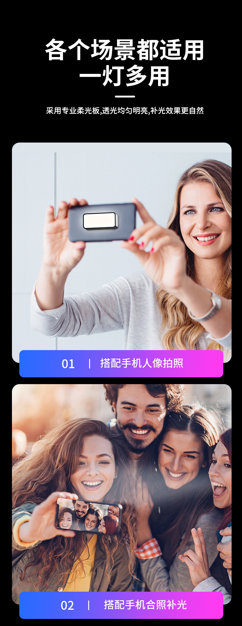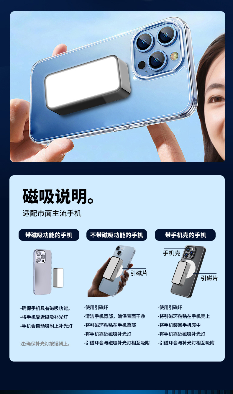 磁吸补光灯直播打光手机摄影拍摄口袋灯迷你豆腐便携式拍照视频