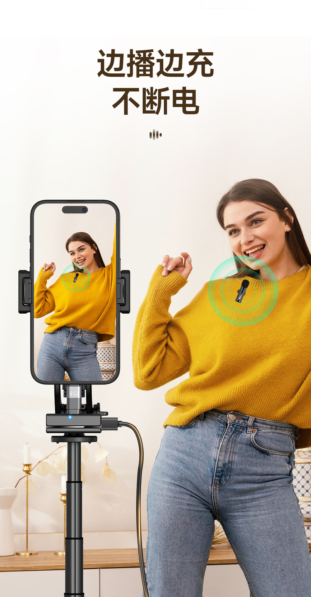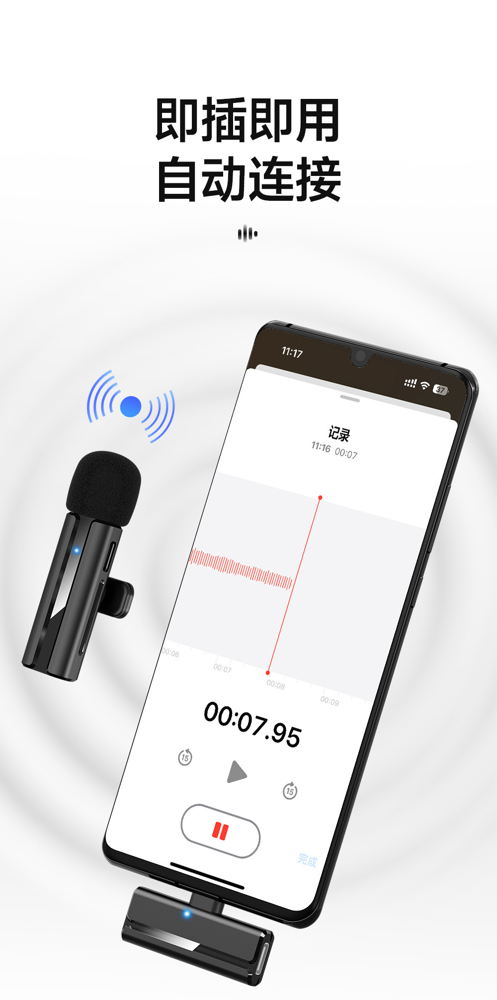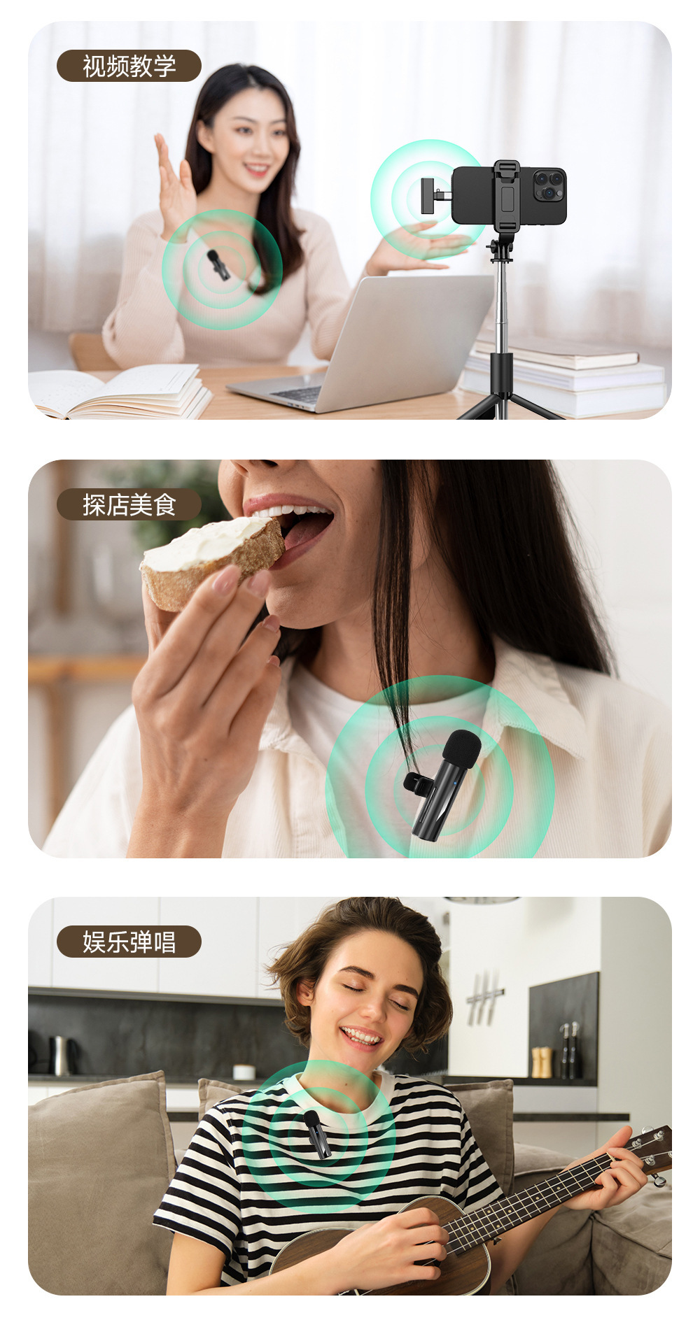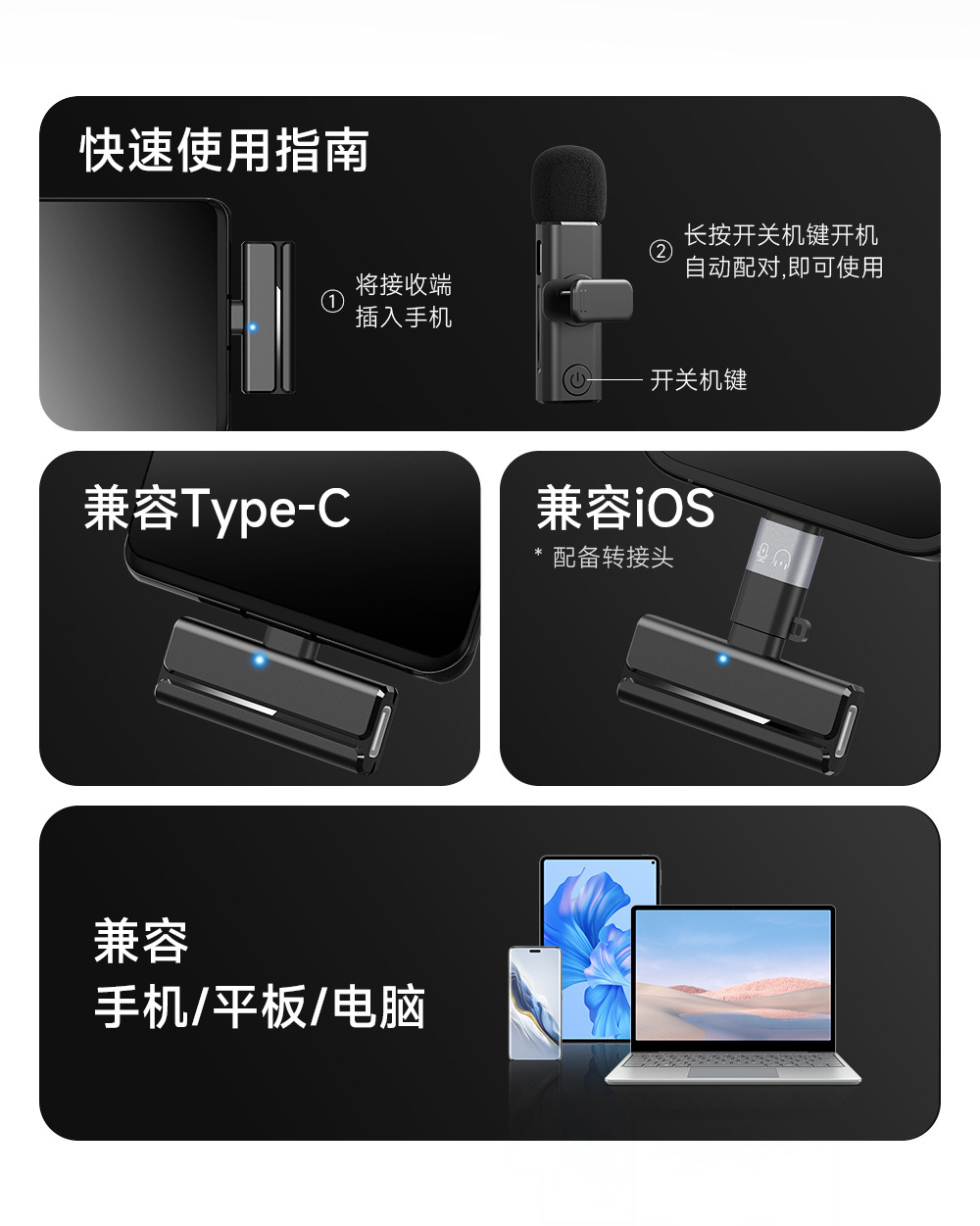 新款H02领夹麦克风一拖二户外直播收音麦无线降噪拍摄录音K歌电脑 投诉