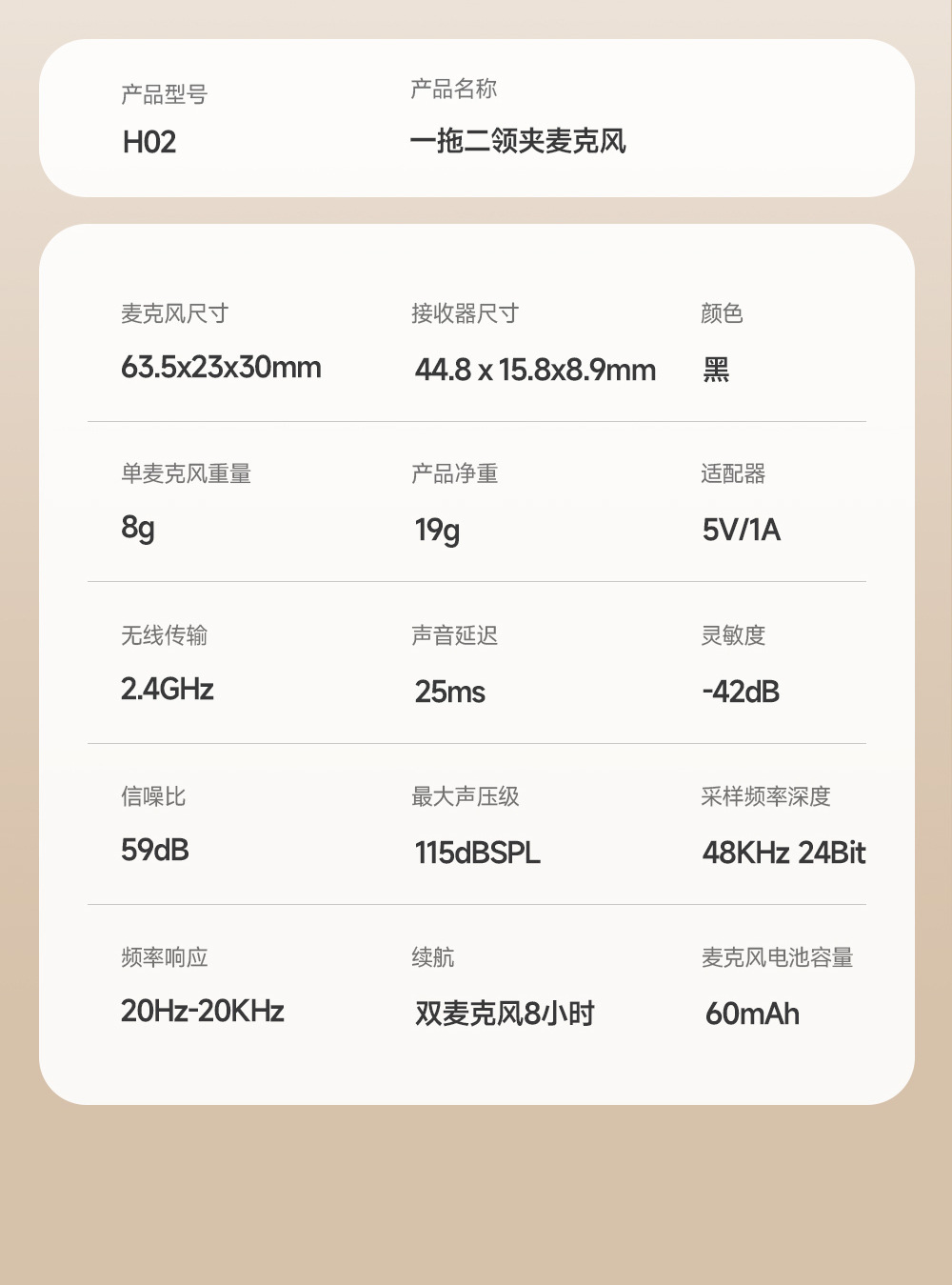 • H02通用款(一拖二领夹麦+转接头+收纳包) ¥3900 3960套可售
