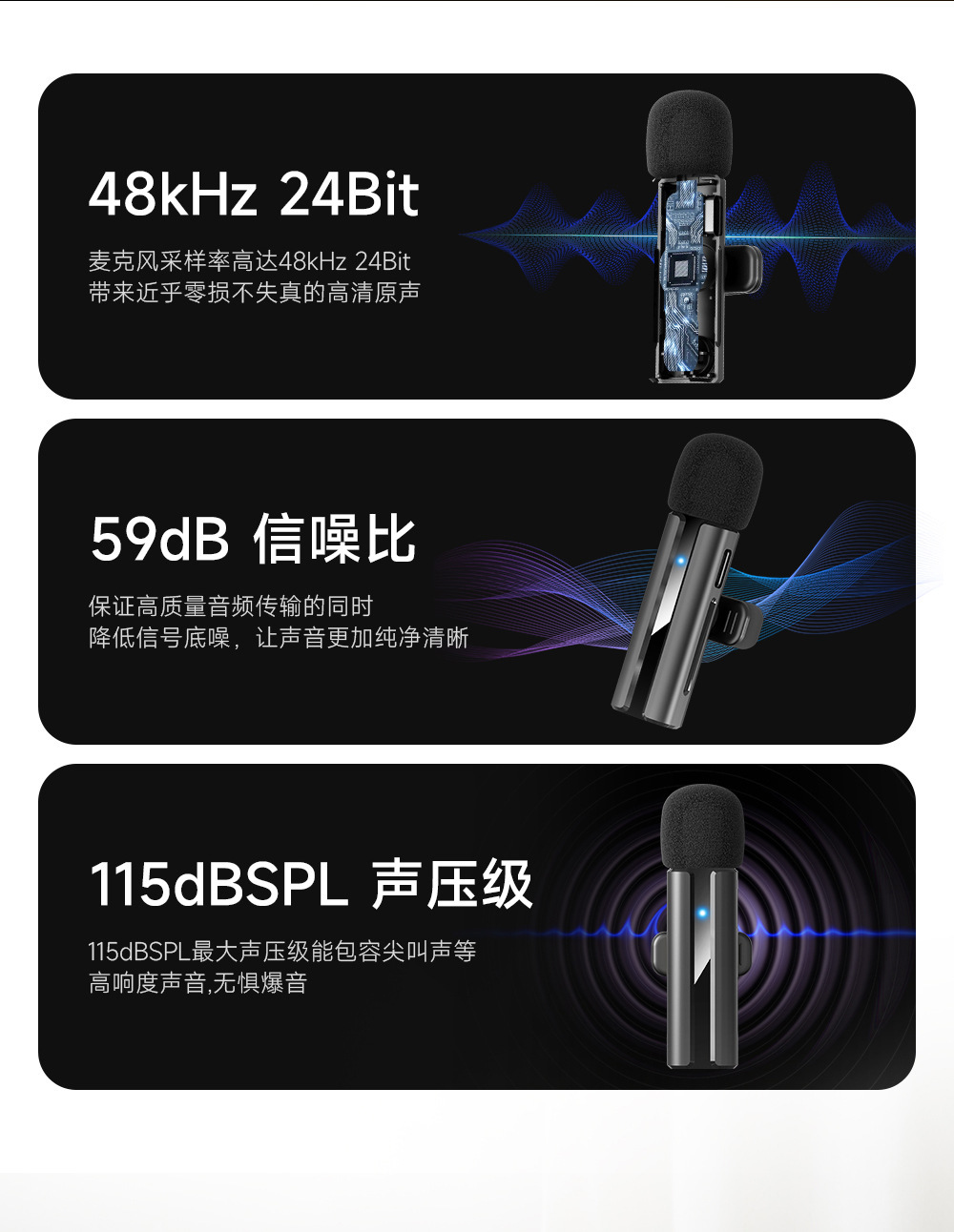 品牌: KYNOVATION 型号: H02领夹麦 上市时间: 2024 产地: 中国 适用对象: 35853539498 有无线: 无 指向特征: 全指向/无指向 售后服务: 质量问题支持维修 货号: H02领夹麦 颜色: 黑色 有可授权的自有品牌: 是 是否跨境出口专供货源: 是 是否专利货源: 否 蓝牙版本: 5.0 内置蓄电池容量: 50mAh-100mAh(含) 信噪比: 60dB以下 频响范围: 20Hz-20KHz 额定功率: 3.7W 额定电压: 3.7V 外观尺寸: 63.5x23x30mm(含夹子) 重量: 0.229 kg/套