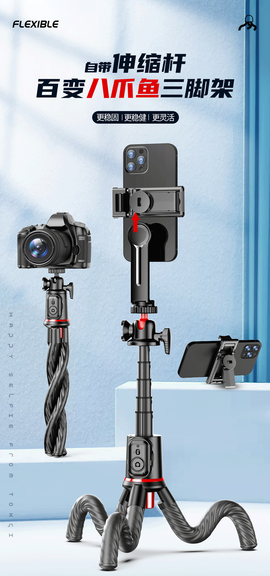 跨境C03八爪鱼自拍杆手机通用三脚架桌面直播手机支架户外拍摄