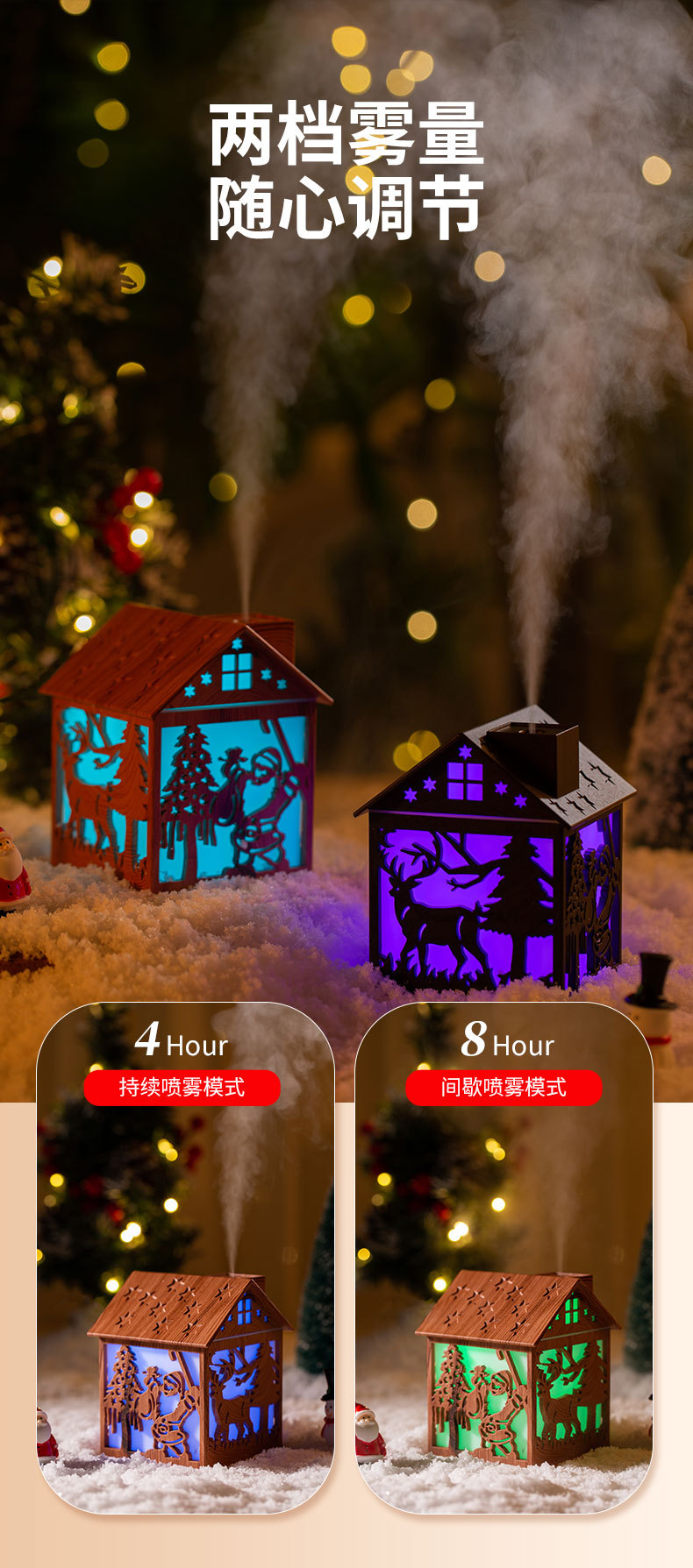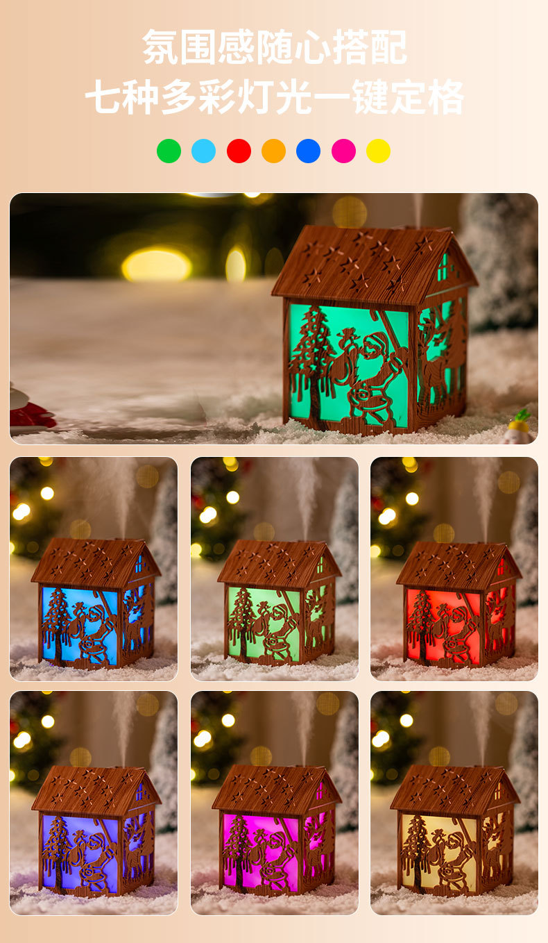 木屋加湿器USB充电大雾量桌面氛围七彩变色夜灯两档喷雾静音加湿
