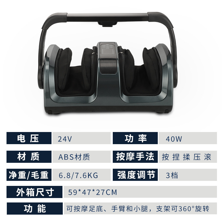 功能: 无线遥控,定时 控制方式: 电脑式 品牌: LEMES 上市时间: 2022 按摩原理: 气囊,揉捏 颜色: 灰 产品类别: 全包裹足疗机(腿部+脚部) 货号: LMS-Z208 重量: 0.497 kg/台