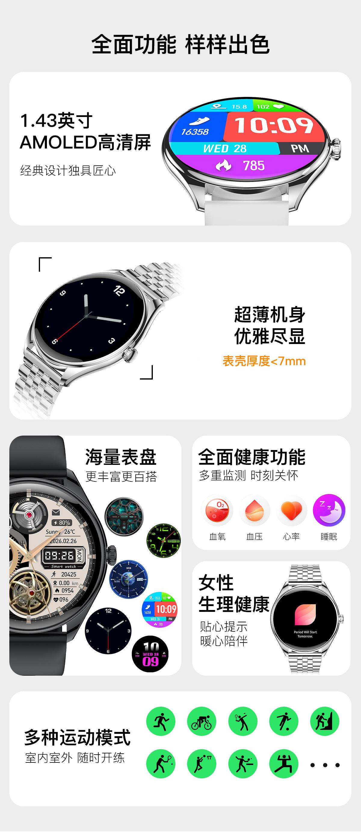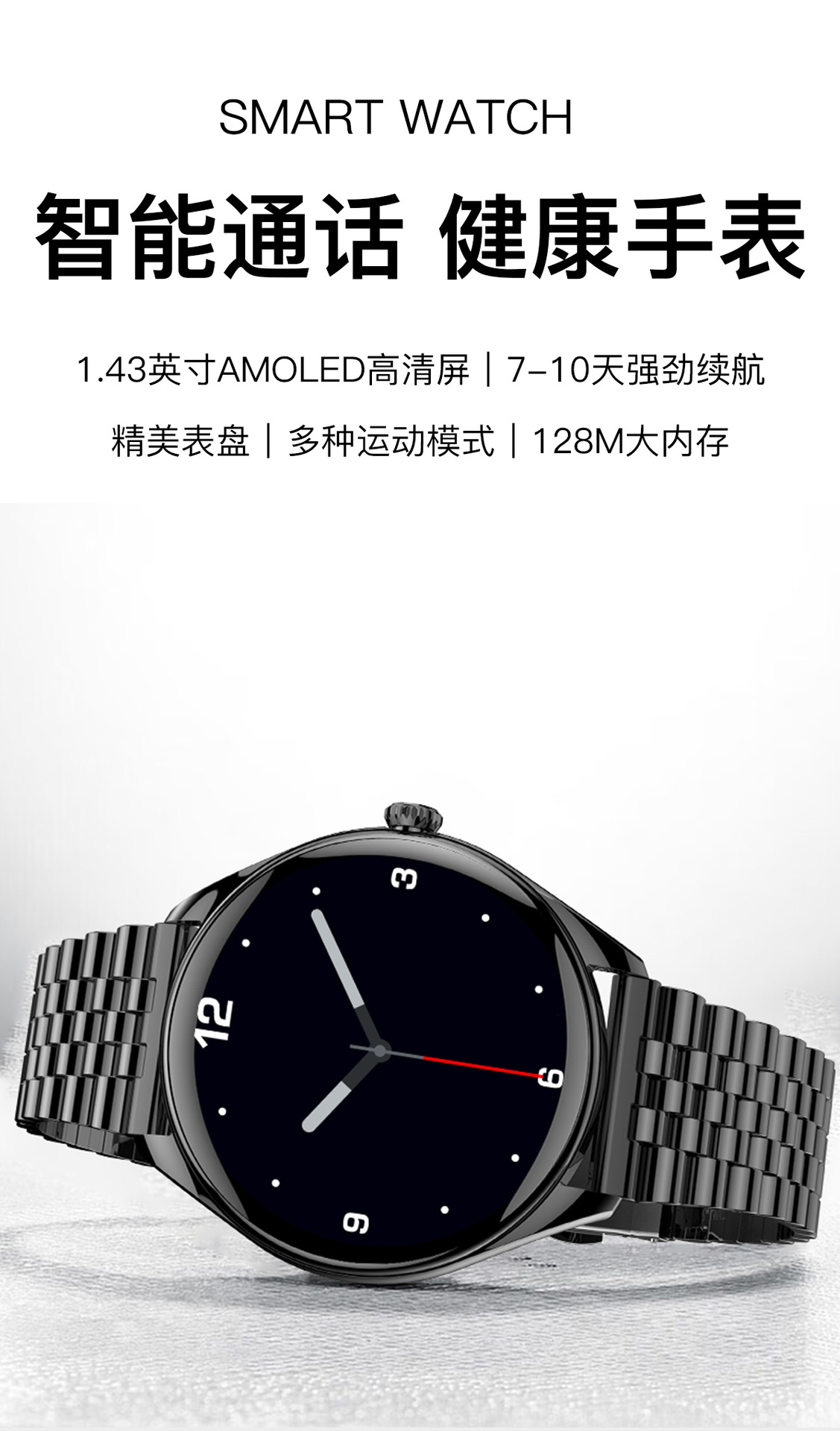 MT55智能手表超薄6.8mm心率血氧监测1.43AMoled防水语音蓝牙通话 投诉