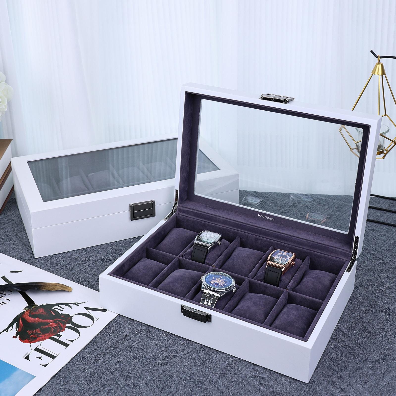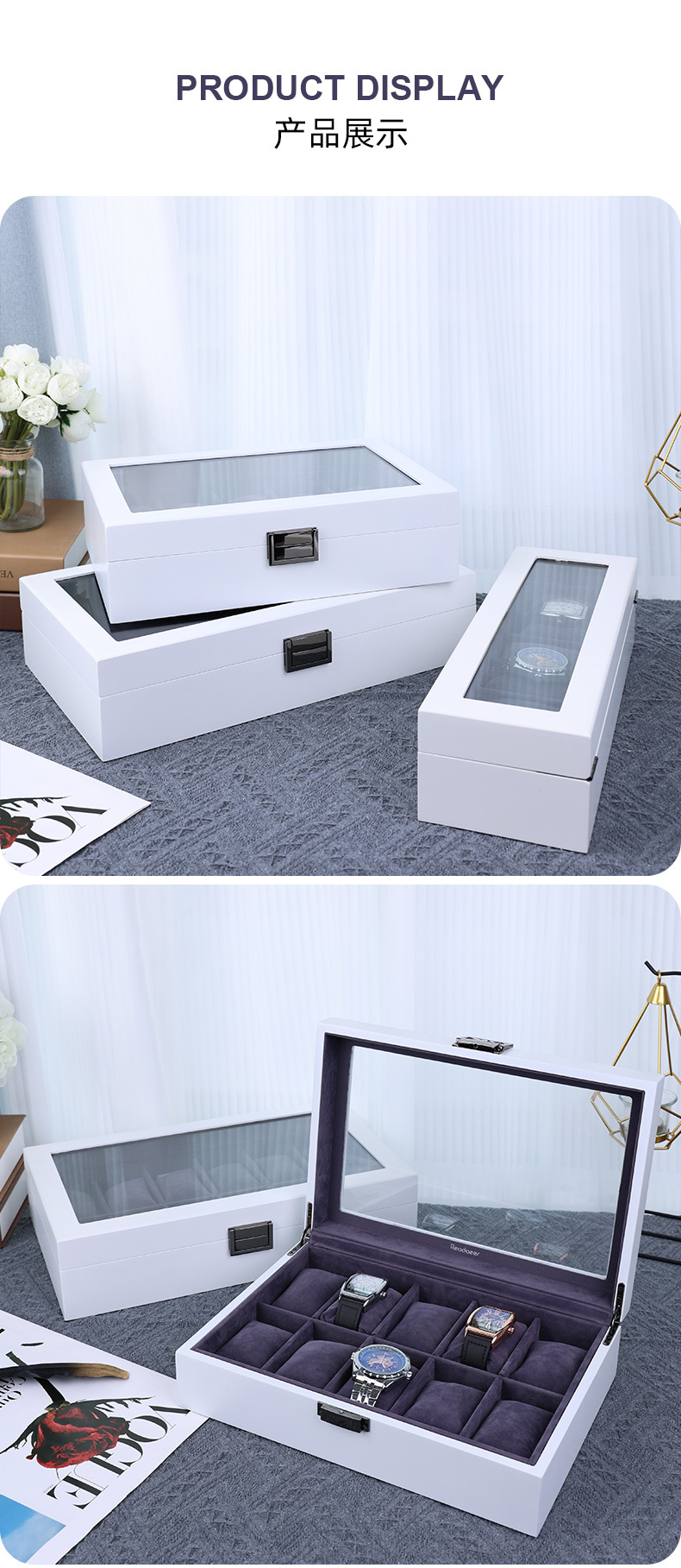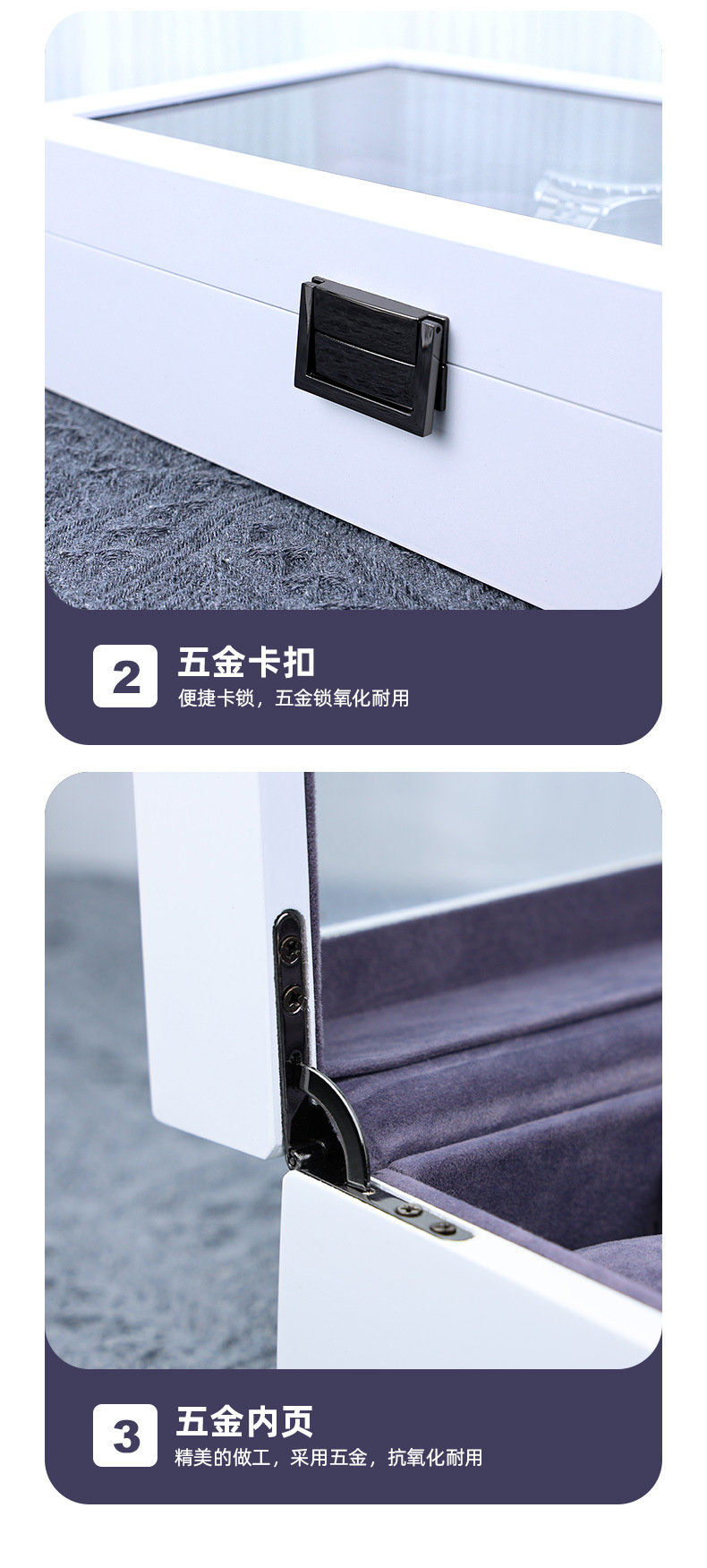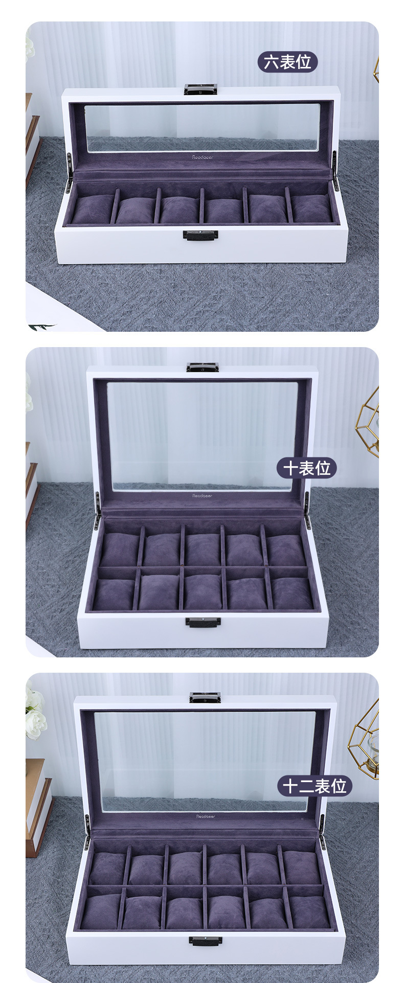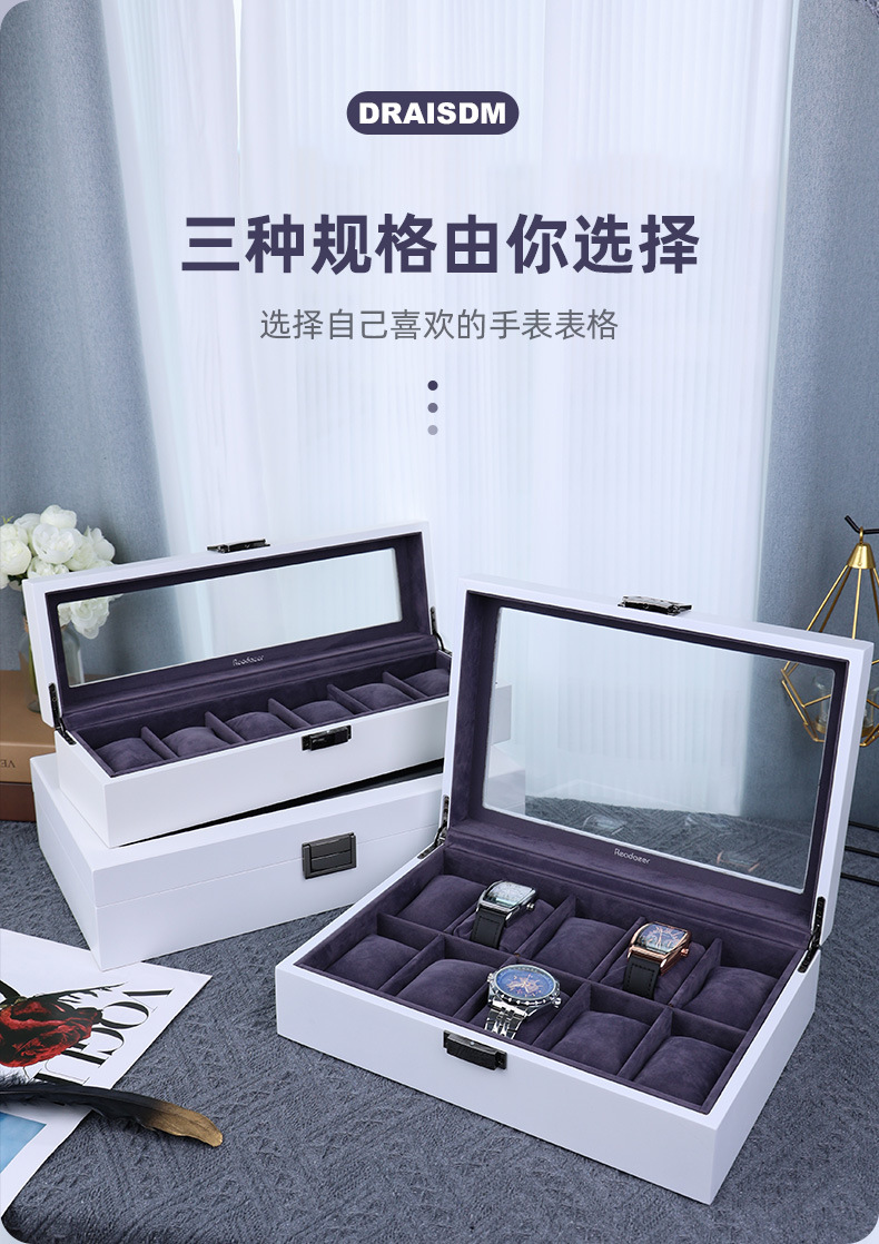 产地: 浙江金华 是否进口: 否 商品类型: 定制 货号: 20231111 材质: 密度板 包装层次: 内包装 工艺: 喷漆 用途: 礼品包装,饰品包装 规格: 6位,10位,12位 型号: 20231111 包装型式: 白色哑光手表盒 颜色: 变色 是否跨境出口专供货源: 否 品牌: 子扬工艺品厂 重量: 0.452 kg/个