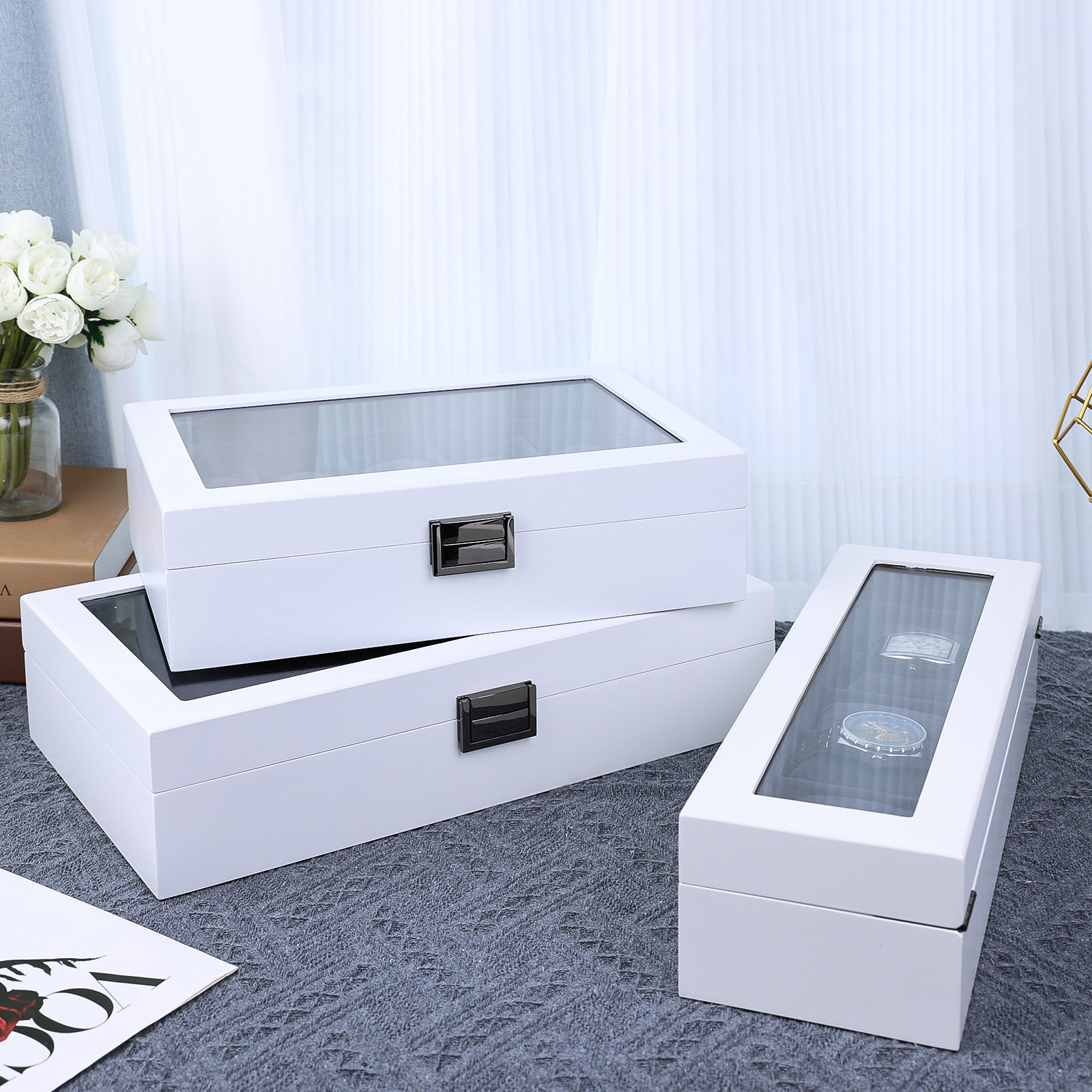 高级感白色哑光6位10位12位烤漆木质喷漆手表盒带小枕头新款