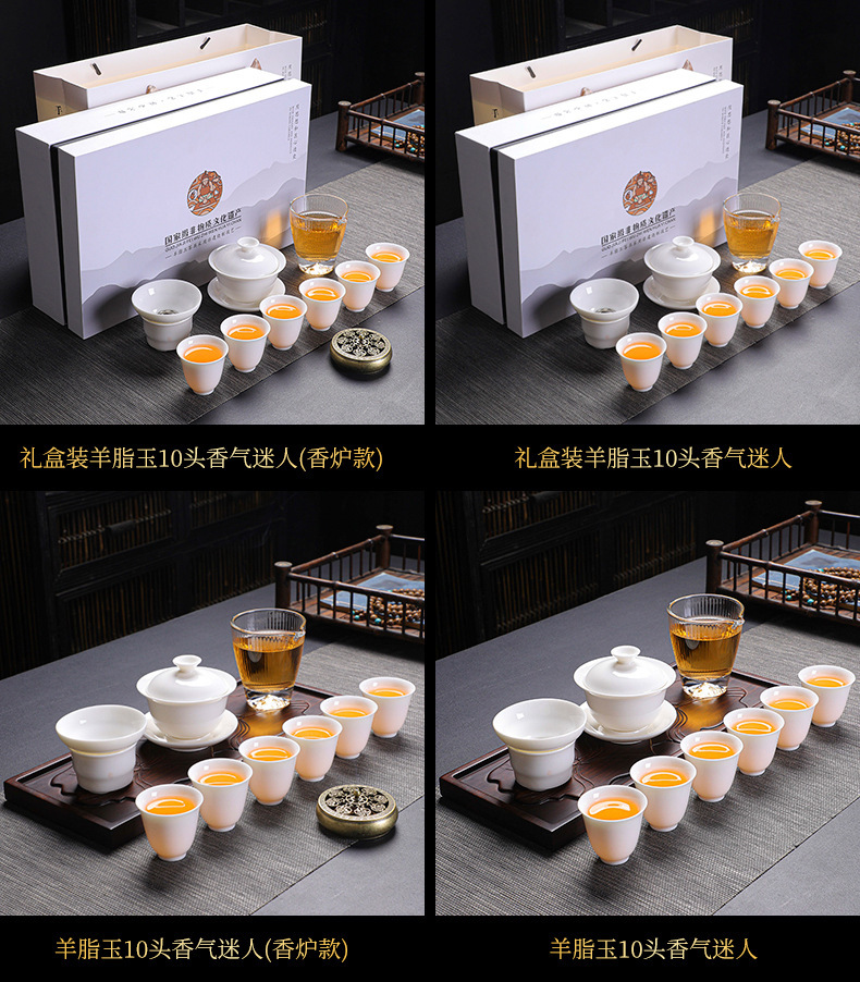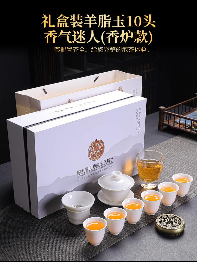 11头羊脂玉茶具套装/香炉款/礼合包装 ¥6000 9251件可售
