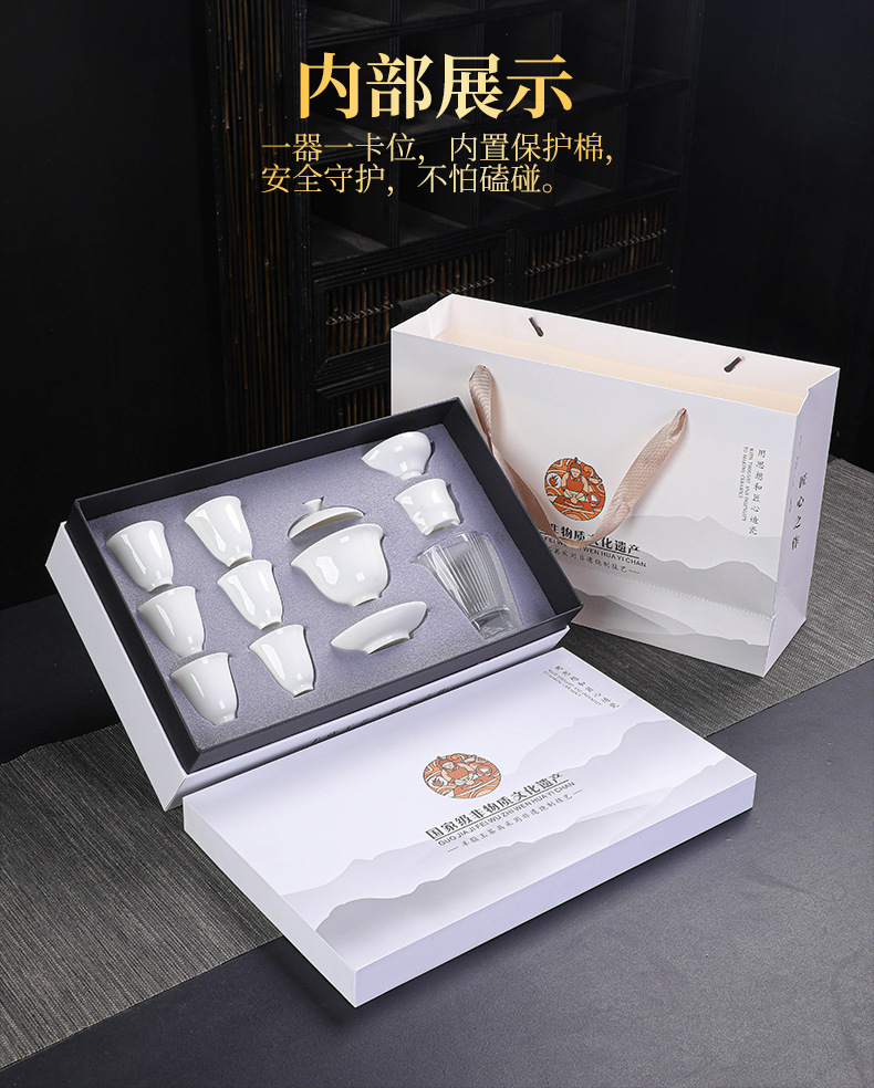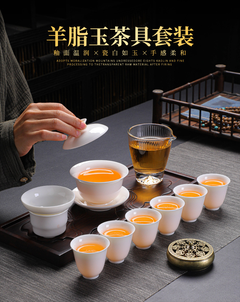 羊脂玉功夫茶具套装家用陶瓷盖碗茶杯整套中国白瓷茶具礼盒装