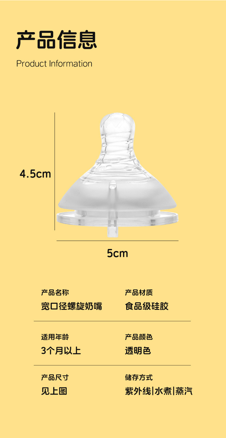 婴儿宽口奶嘴螺旋磨砂通用新生宝宝仿真母乳防胀气全硅胶实感奶嘴 投诉