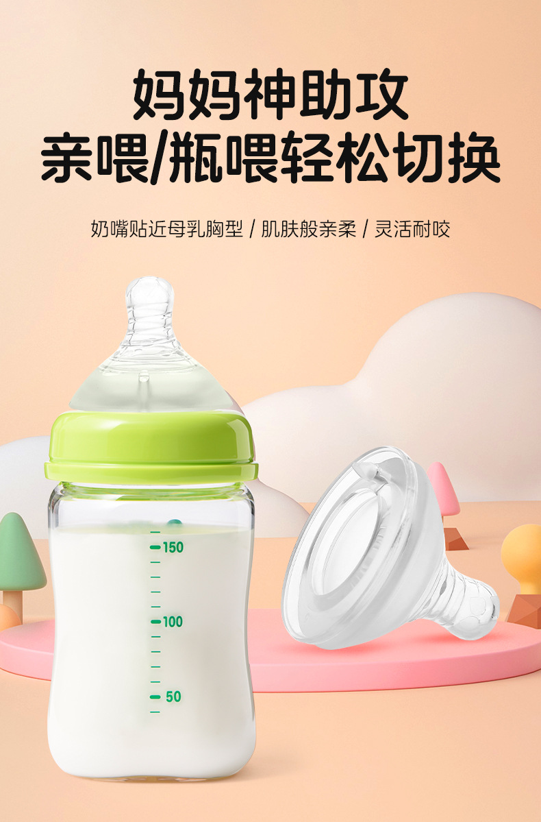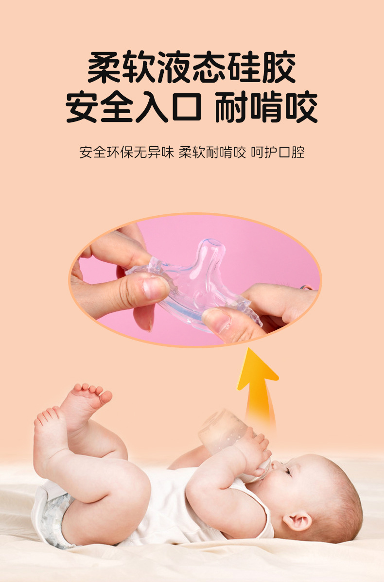 婴儿宽口奶嘴螺旋磨砂通用新生宝宝仿真母乳防胀气全硅胶实感奶嘴
