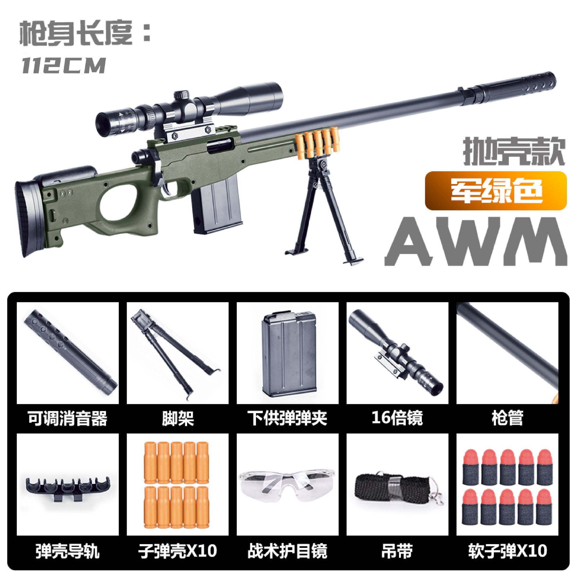 | 92厘米AWM绿色抛壳软弹枪(电商盒) | ¥2350 | 9914盒可售 |
