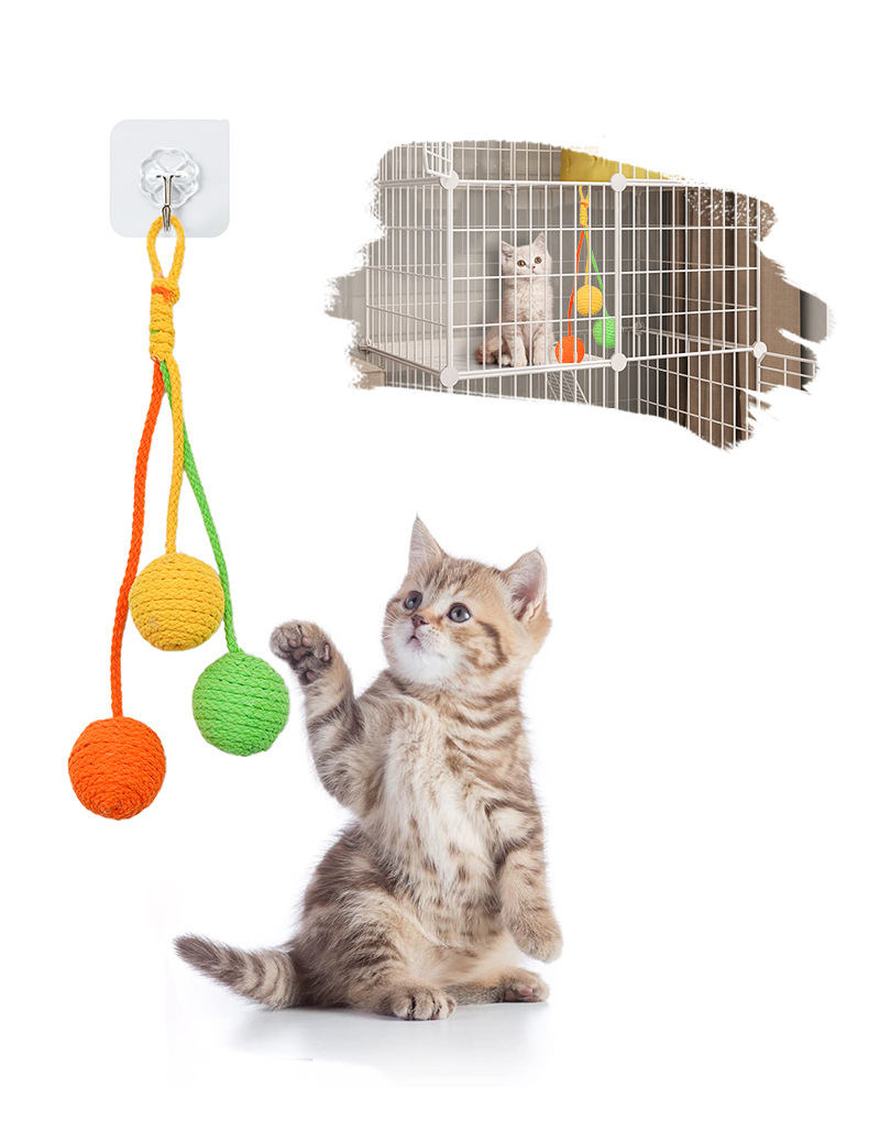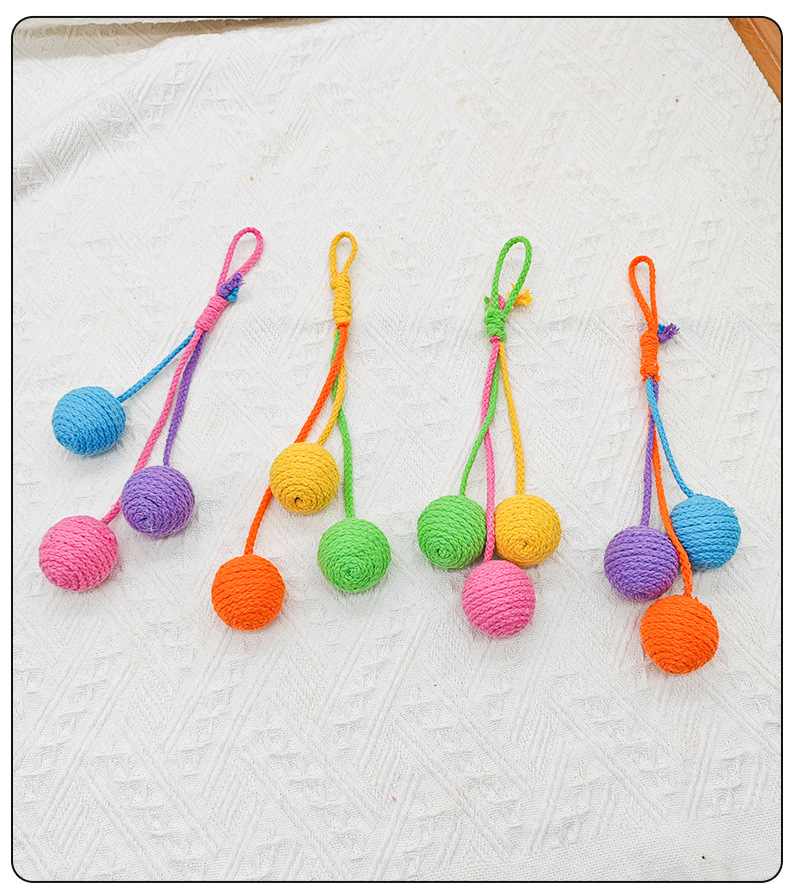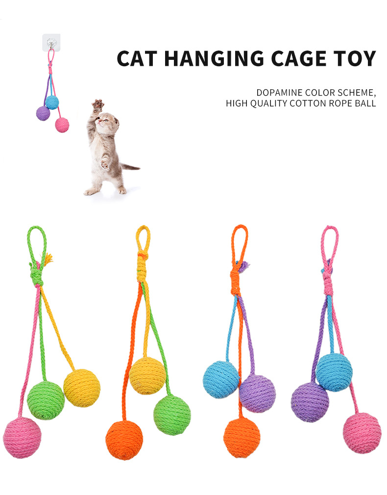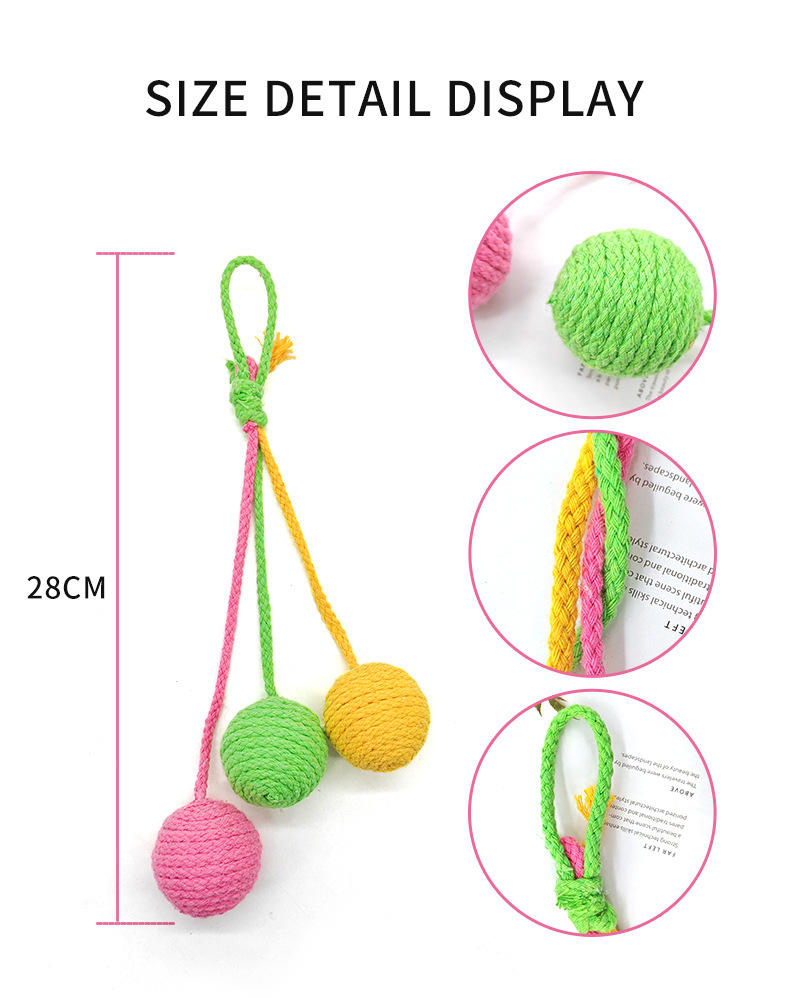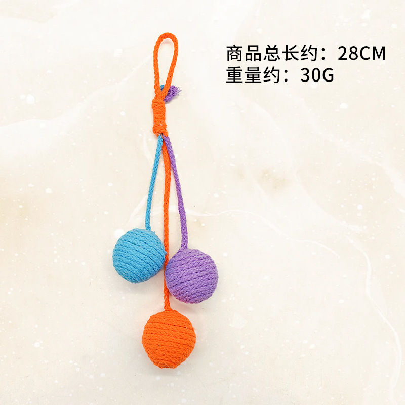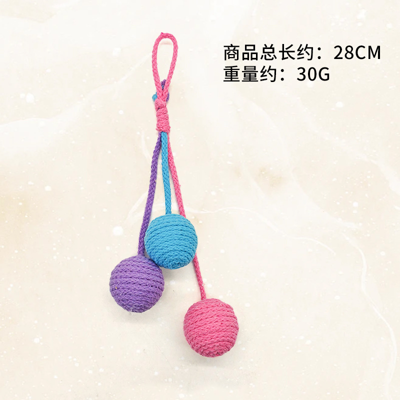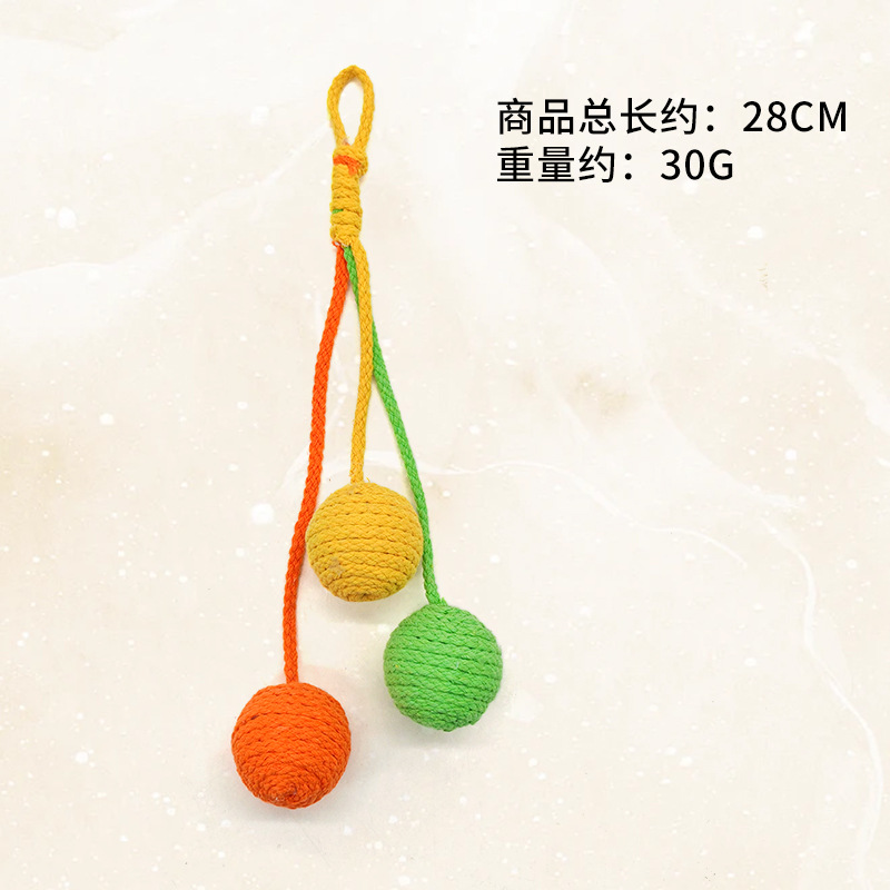 厂家生产批发逗猫可悬挂棉绳球耐咬磨牙自嗨猫咪逗猫玩具猫吊绳球